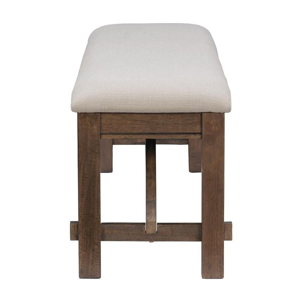 Turino Rustic Umber Bench Gather around the table with this handsome bench featuring a classic design constructed from rubberwood and finished padded upholstery. By balancing durability with comfort and style, this bench offers long-lasting beauty for years to come. Pair with the matching table or chair to create a cohesive dining set, or refresh your existing table with this classic piece. Classic style bench with T-shaped supports Thick, sturdy chair design Padded upholstery for added comfort Solid tan performance fabric that resists and releases stains, moisture and odors Rubberwood frame in rustic umber finish Matching table and chairs also available Seat height: 20.25″ Seat dimensions: 61″W x 16″D – Seat Height: 20.25″ – Seat Dimensions: 61″w x 16″d x 3.25″h – Item Weight: 39.69 – Fabric Content: 100% Polyester – item H: 20.5 – item L: 60 – Fabric Color or Design: Tan – Item D: 16