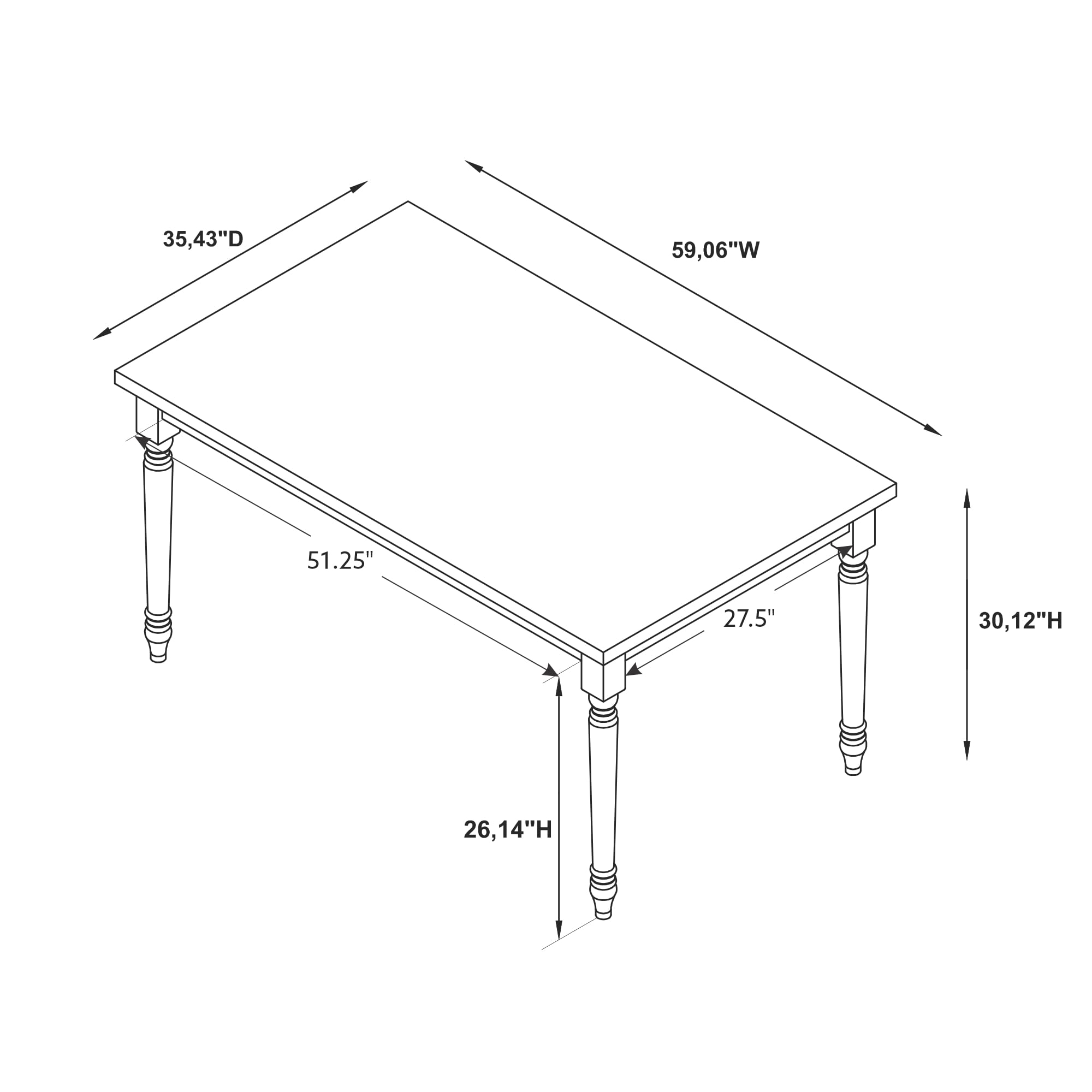 Willow Grey Dining Table Striking combination of a smokey white top with dark grey foundation, this dining table will make a statement in your home. Multi-step brushed finish brings out the rich grain of the oak wood veneer. Sculpted, turned legs with glaze finish add a farmhouse touch. Solid wood construction that is built to last. Comfortably accommodates 4 to 6 for dining or game night. Multi step brush glaze finish; top is smokey white and base dark grey Sculpted, turned solid wood legs Available matching chair and bench Table can comfortably accommodate 4-6 people Table top: 35.5″ x 59″ Table height: 30.25″ Weight capacity of 150 lbs Some assembly required – Seat Height: NA – Seat Dimensions: NA – Item Weight: 72.6 – Fabric Content: NA – item H: 30.25 – item L: 35.5 – Fabric Color or Design: NA – Item D: 59