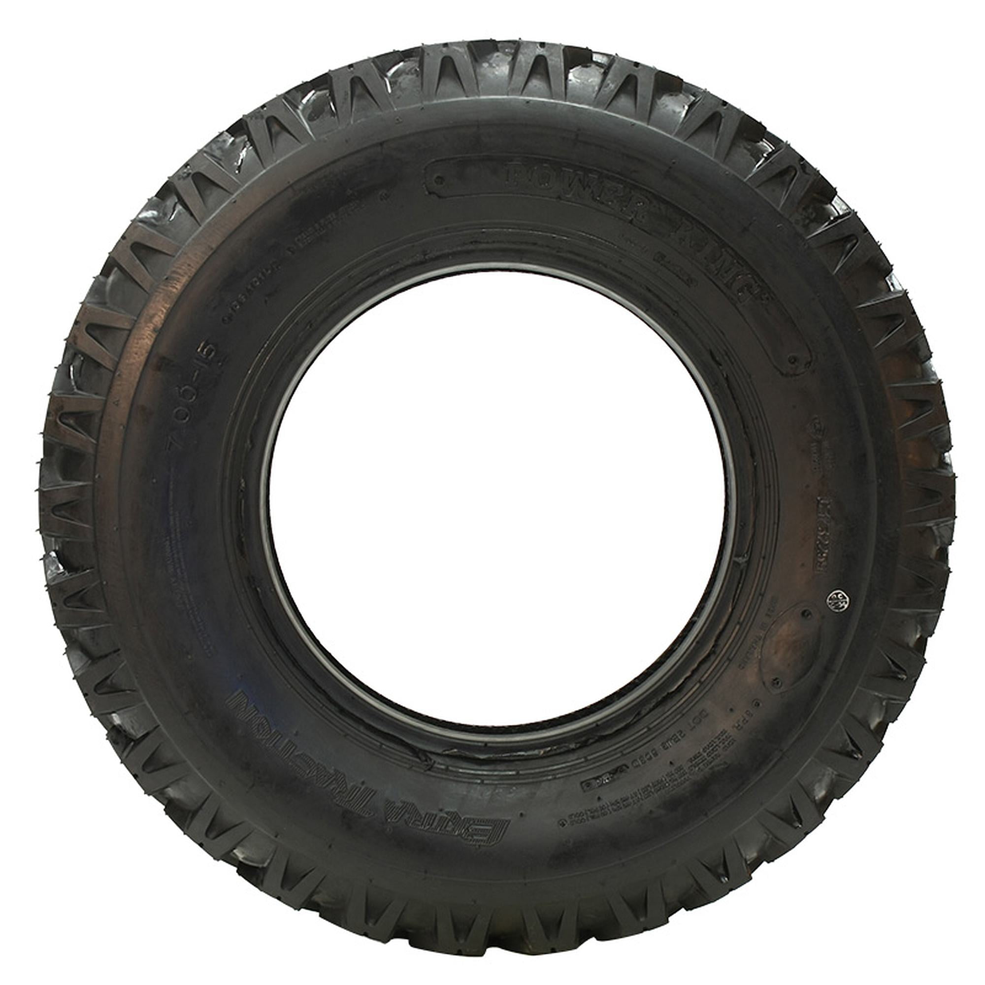 Power King Super Traction II 7.50-16 116L E OVERVIEW The Power King Super Traction II is a bias-ply all-terrain traction tire that’s designed for light trucks and SUVs and can also be pinned with studs. The Super Traction II features an extremely aggressive tread pattern with big traction bars for a solid grip in mud and sand. An advanced, self-cleaning lug design ensures optimal grip on varied terrains, and the Super Traction II’s optimized tread compound offers solid traction and promotes reduced treadwear. Sipes provide additional grip and traction, and the Super Traction II’s squared shoulder area helps in achieving superior stability and control. Additionally, the sturdy sidewalls of the Super Traction II improve load carrying capacity and restrict tire deformation for a longer tread life.
