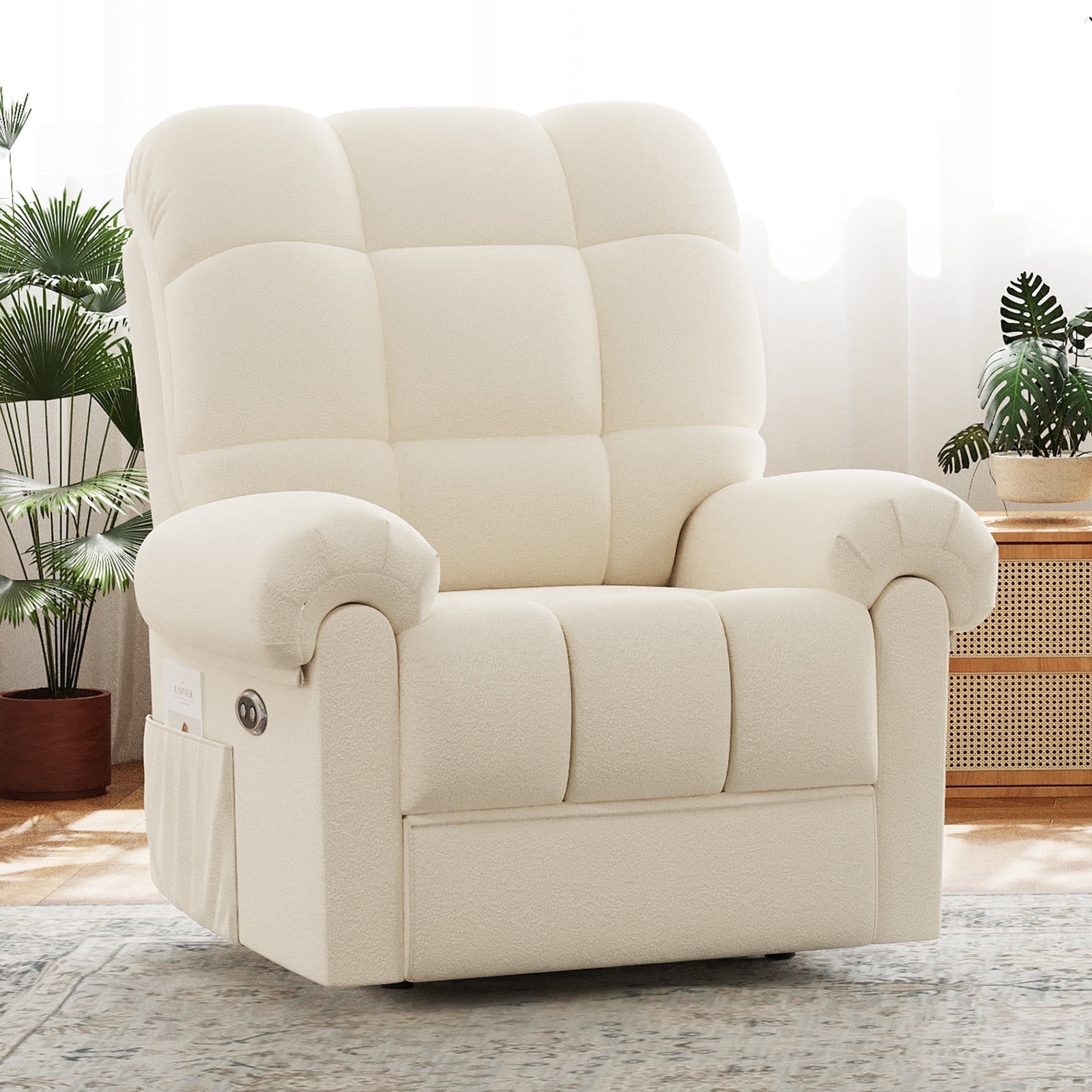 Power Recliner Chair,Electric Recline Sofa Chair for Adults with USB Port,Comfy Teddy Fleece Adjustable Cloud Sofa,Tool-Free Setup,Beige White