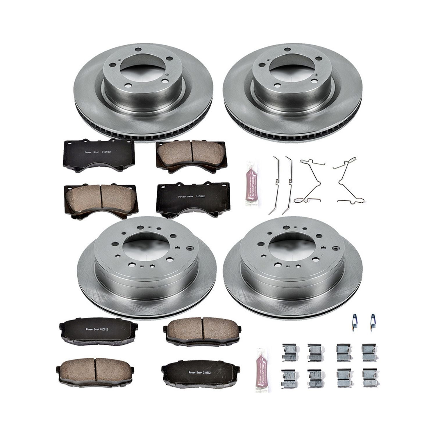Power Stop Front and Rear Stock Replacement Brake Pad and Rotor Kit KOE2813 Components are designed to match the OE performance of your brakes Multi-layer rubberized shims provide virtually noise free braking Rotors use G3000 castings and are 100 percent mill balanced for stock performance and safety Includes brake pads, rotors, installation hardware, and ceramic brake lubricant 2021 LEXUS LX570 ; 2020 LEXUS LX570 ; 2019 LEXUS LX570 ; 2018 LEXUS LX570 ; 2017 LEXUS LX570 ; 2016 LEXUS LX570 ; 2021 TOYOTA LAND CRUISER ; 2020 TOYOTA LAND CRUISER ; 2019 TOYOTA LAND CRUISER ; 2018 TOYOTA LAND CRUISER ; 2017 TOYOTA LAND CRUISER ; 2016 TOYOTA LAND CRUISER ; 2022 TOYOTA SEQUOIA ; 2021 TOYOTA SEQUOIA ; 2020 TOYOTA SEQUOIA ; 2019 TOYOTA SEQUOIA ; 2018 TOYOTA SEQUOIA ; 2017 TOYOTA SEQUOIA ; 2016 TOYOTA SEQUOIA ; 2015 TOYOTA SEQUOIA ; 2014 TOYOTA SEQUOIA ; 2013 TOYOTA SEQUOIA ; 2012 TOYOTA SEQUOIA ; 2011 TOYOTA SEQUOIA ; 2010 TOYOTA SEQUOIA ; 2009 TOYOTA SEQUOIA ; 2008 TOYOTA SEQUOIA ; 2021 TOYOTA TUNDRA ; 2020 TOYOTA TUNDRA ; 2019 TOYOTA TUNDRA ; 2018 TOYOTA TUNDRA ; 2017 TOYOTA TUNDRA ; 2016 TOYOTA TUNDRA ; 2015 TOYOTA TUNDRA MFG After 8/2015; 2015 TOYOTA TUNDRA MFG Up To 8/2015; 2014 TOYOTA TUNDRA ; 2013 TOYOTA TUNDRA ; 2012 TOYOTA TUNDRA ; 2011 TOYOTA TUNDRA ; 2010 TOYOTA TUNDRA ; 2009 TOYOTA TUNDRA ; 2008 TOYOTA TUNDRA ; 2007 TOYOTA TUNDRA