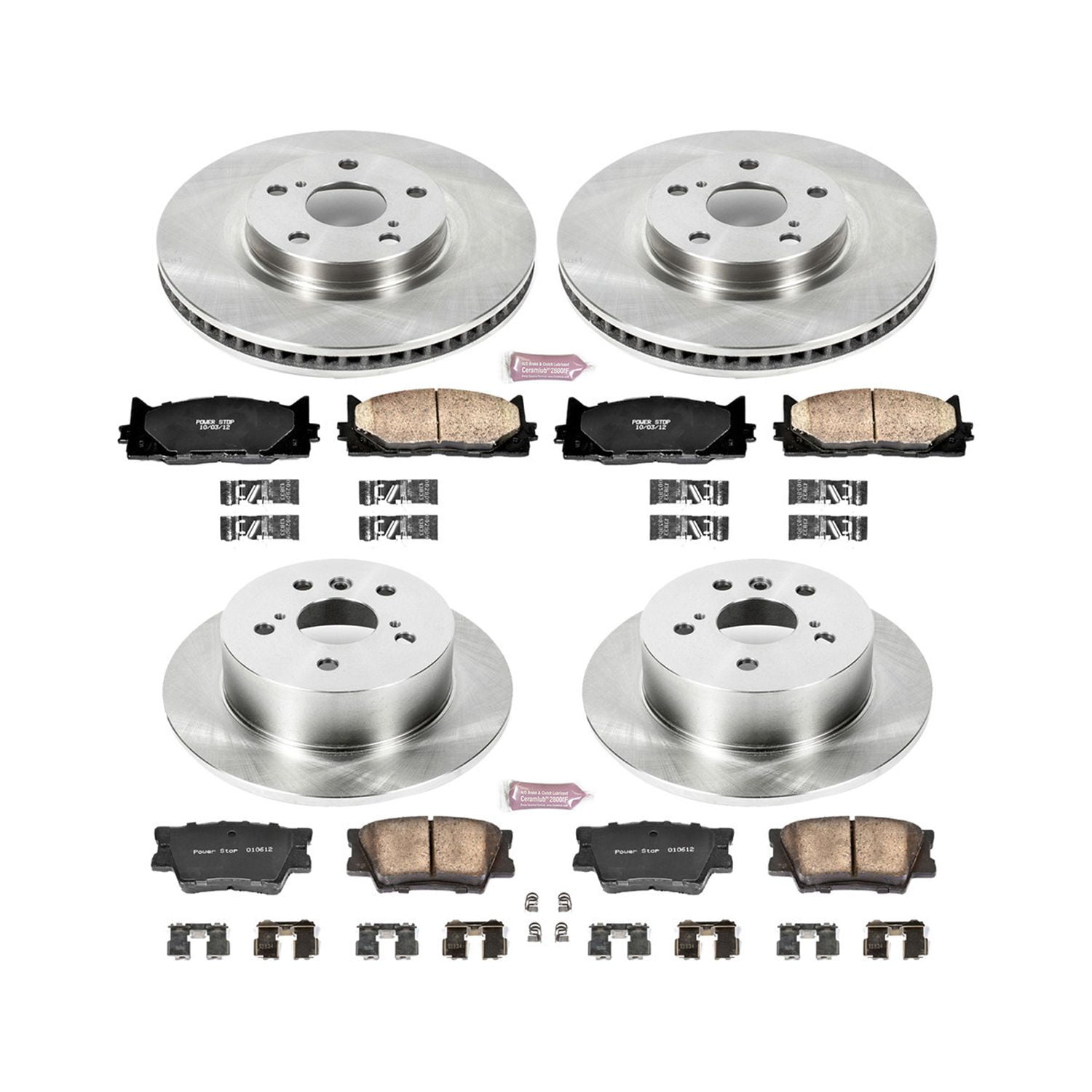 Power Stop Stock Replacement Brake Pad and Rotor Kit •Z17 Evolution carbon-fiber ceramic low-dust brakes pads •Rotors use G3000 castings and are 100% mill balanced for stock performance and safety •Includes all hardware necessary for a complete installation •Fits: Lexus ES350 2012-2007; Toyota Avalon 2012-2008; Camry 2011-2007