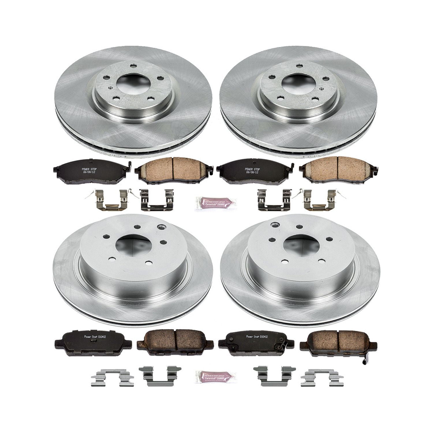 Check compatibility with your vehicle at Power Stop Stock Replacement brake kits include a complete set of Autospecialty OE Replacement Brake Rotors and high performance Evolution Ceramic Pads. The rotors are cast using the finest G3000 metallurgy with strict OE tolerances – making them a perfect, bolt-on upgrade without the need to make any modifications. They are non-directional rotor surface with 100% mill balance. This affordable stock replacement brake kit is for all vehicles. If you need a fast, easy and affordable solution for better braking, then you need Power Stop Autospecialty OE Replacement Brake Kit!