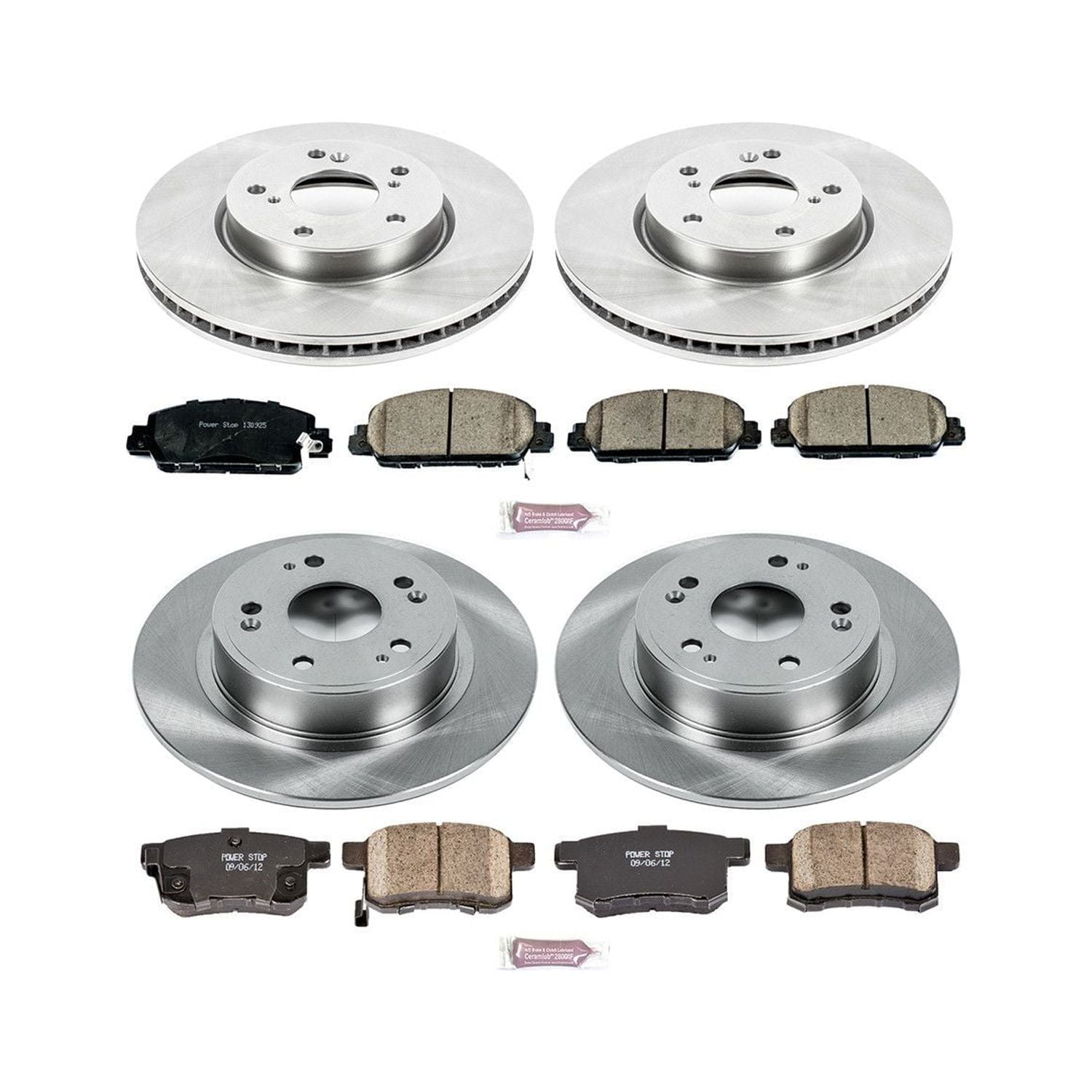 Power Stop Front and Rear Stock Replacement Brake Pad and Rotor Kit KOE6516 Components are designed to match the OE performance of your brakes Multi-layer rubberized shims provide virtually noise free braking Rotors use G3000 castings and are 100 percent mill balanced for stock performance and safety Includes brake pads, rotors, installation hardware, and ceramic brake lubricant 2017 HONDA ACCORD Coupe EX, EX-L 4 Cylinder; 2016 HONDA ACCORD Coupe EX, EX-L 4 Cylinder; 2015 HONDA ACCORD Coupe EX, EX-L 4 Cylinder; 2014 HONDA ACCORD Coupe EX, EX-L; 2013 HONDA ACCORD Coupe EX, EX-L 4 Cylinder; 2017 HONDA ACCORD Sedan EX, EX-L; 2017 HONDA ACCORD Sedan Hybrid; 2016 HONDA ACCORD Sedan EX, EX-L; 2015 HONDA ACCORD Sedan EX, EX-L, Sport; 2015 HONDA ACCORD Sedan Hybrid, Hybrid EX-L, Hybrid Touring; 2015 HONDA ACCORD Sedan Plug-In; 2014 HONDA ACCORD Sedan EX, EX-L, Sport, Touring; 2014 HONDA ACCORD Sedan Plug-In; 2013 HONDA ACCORD Sedan EX, EX-L, Sport – 4 Cylinder