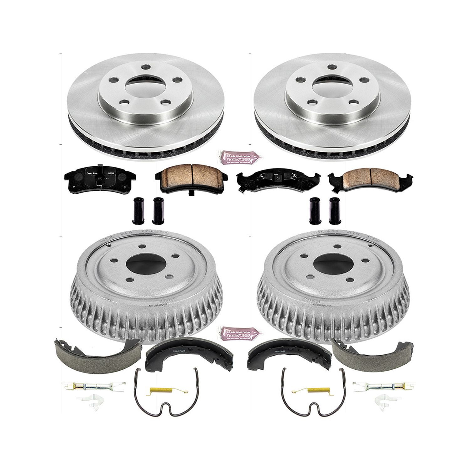 PowerStop’s Stock Replacement Pad, Rotor, Drum and Shoe Kits include a set of OE (original equipment) brake rotors, a set of PowerStop Z17 brake pads, a set of PowerStop Evolution Premium Coated brake drums, a complete set of brake shoes, the spring/hold-down kit, and adjusters where applicable. The rotors are 100% mill balanced and precision-made to fit your specific vehicle. The brake pads feature a dust and noise-free ceramic formula that is validated through 3rd party tests in the USA to keep your wheels clean and looking good. Our brake shoes are Arc Ground to fit perfectly with the brake drums which reduces noise and improves stopping power. If you need a fast, easy and affordable solution for better braking, then you need a Stock Replacement Pad, Rotor, Drum and Shoe Kit.
