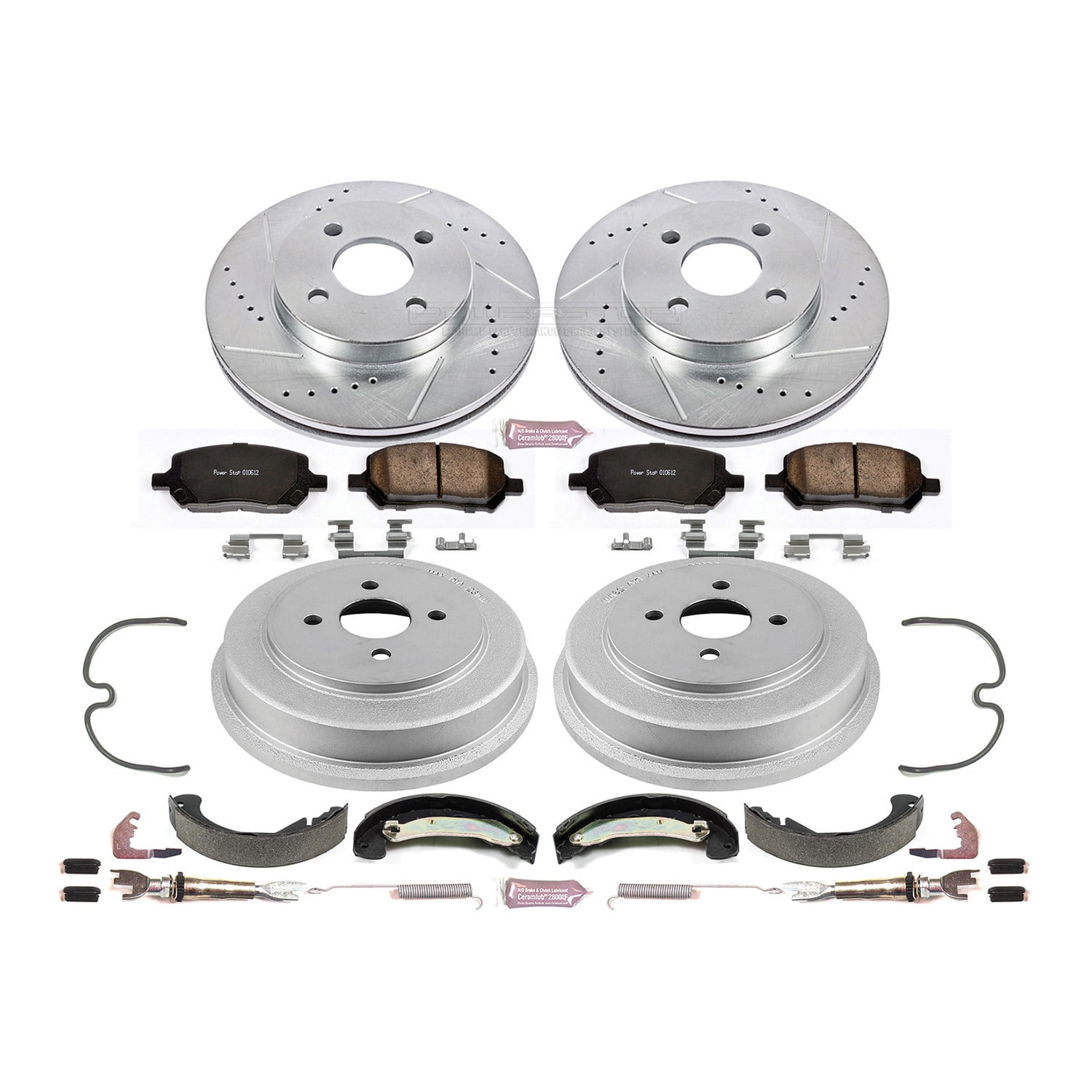 PowerStop’s Stock Replacement Pad, Rotor, Drum and Shoe Kits include a set of OE (original equipment) brake rotors, a set of PowerStop Z17 brake pads, a set of PowerStop Evolution Premium Coated brake drums, a complete set of brake shoes, the spring/hold-down kit, and adjusters where applicable. The rotors are 100% mill balanced and precision-made to fit your specific vehicle. The brake pads feature a dust and noise-free ceramic formula that is validated through 3rd party tests in the USA to keep your wheels clean and looking good. Our brake shoes are Arc Ground to fit perfectly with the brake drums which reduces noise and improves stopping power. If you need a fast, easy and affordable solution for better braking, then you need a Stock Replacement Pad, Rotor, Drum and Shoe Kit.
