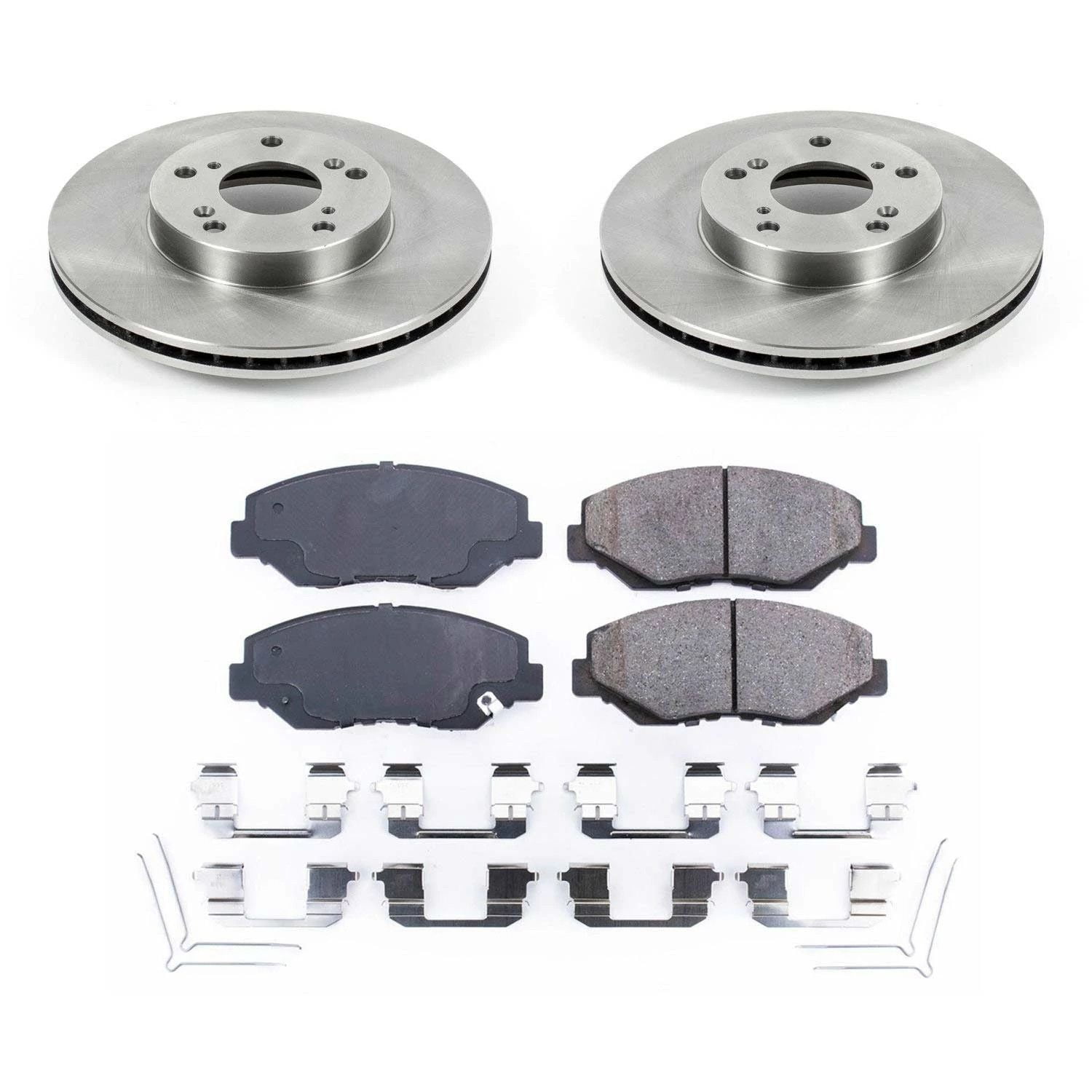 Power Stop Front Stock Replacement Brake Pad and Rotor Kit KOE1043 Components are designed to match the OE performance of your brakes Multi-layer rubberized shims provide virtually noise free braking Rotors use G3000 castings and are 100 percent mill balanced for stock performance and safety Includes brake pads, rotors, installation hardware, and ceramic brake lubricant 2015 ACURA ILX 2.0L Engine; 2014 ACURA ILX 2.0L Engine; 2012 HONDA ACCORD Coupe LX-S 4 Cylinder; 2011 HONDA ACCORD Coupe LX-S 4 Cylinder; 2010 HONDA ACCORD Coupe LX-S 4 Cylinder; 2009 HONDA ACCORD Coupe LX-S 4 Cylinder; 2008 HONDA ACCORD Coupe LX-S 4 Cylinder; 2007 HONDA ACCORD Coupe 4 Cylinder Models with Rear Disc brakes; 2007 HONDA ACCORD Coupe 4 Cylinder Models with Rear Drum brakes; 2006 HONDA ACCORD Coupe 4 Cylinder Models with Rear Disc brakes; 2006 HONDA ACCORD Coupe 4 Cylinder Models with Rear Drum brakes; 2005 HONDA ACCORD Coupe 4 Cylinder Models with Rear Disc brakes; 2005 HONDA ACCORD Coupe 4 Cylinder Models with Rear Drum brakes; 2004 HONDA ACCORD Coupe 4 Cylinder Models with Rear Disc brakes; 2004 HONDA ACCORD Coupe 4 Cylinder Models with Rear Drum brakes; 2003 HONDA ACCORD Coupe 4 Cylinder Models with Rear Disc brakes; 2003 HONDA ACCORD Coupe 4 Cylinder Models with Rear Drum brakes; 2012 HONDA ACCORD Sedan LX, LX-P, SE; 2011 HONDA ACCORD Sedan LX, LX-P, SE; 2010 HONDA ACCORD Sedan LX, LX-P; 2009 HONDA ACCORD Sedan LX, LX-P; 2008 HONDA ACCORD Sedan LX, LX-P; 2007 HONDA ACCORD Sedan 4 Cyl. with Rear Discs; 2007 HONDA ACCORD Sedan 4 Cyl. with Rear Drums; 2006 HONDA ACCORD Sedan 4 Cylinder with Rear Disc; 2006 HONDA ACCORD Sedan 4 Cylinder with Rear Drums; 2005 HONDA ACCORD Sedan 4 Cylinder with Rear Disc; 2005 HONDA ACCORD Sedan 4 Cylinder with Rear Drums; 2005 HONDA ACCORD Sedan V6 Hybrid; 2004 HONDA ACCORD Sedan 4 Cylinder with Rear Disc; 2004 HONDA ACCORD Sedan 4 Cylinder with Rear Drums; 2003 HONDA ACCORD Sedan 4 Cylinder with Rear Disc; 2003 HONDA ACCORD Sedan 4 Cylinder with Rear Drums; 2021 HONDA CIVIC EX Hatchback; 2021 HONDA CIVIC EX; EX-L Sedan; 2021 HONDA CIVIC LX, Sport (1.5L models); 2021 HONDA CIVIC LX, Sport (2.0L models); 2021 HONDA CIVIC Sport Touring; 2021 HONDA CIVIC Touring; 2020 HONDA CIVIC EX; EX-L Coupe and Sedan; 2020 HONDA CIVIC EX; EX-L Hatchback; 2020 HONDA CIVIC LX, Sport (1.5L models); 2020 HONDA CIVIC LX, Sport (2.0L models); 2020 HONDA CIVIC Sport Touring; 2020 HONDA CIVIC Touring; 2019 HONDA CIVIC EX; EX-L; LX; Sport Touring; Sport; Touring; 2018 HONDA CIVIC Coupe Exc. Si; 2017 HONDA CIVIC Coupe Exc. Si; 2016 HONDA CIVIC Coupe ; 2015 HONDA CIVIC Coupe EX, EX-L; 2015 HONDA CIVIC Coupe LX; w/CVT Trans; 2014 HONDA CIVIC Coupe EX, EX-L; 2014 HONDA CIVIC Coupe LX; w/CVT Trans; 2013 HONDA CIVIC Coupe EX, EX-L; w/Rear Discs; 2013 HONDA CIVIC Coupe LX; w/Automatic Trans; 2018 HONDA CIVIC Hatchback Sport; Sport Touring; LX; EX; 2017 HONDA CIVIC Hatchback Sport; LX; EX-L; EX; 2018 HONDA CIVIC Sedan EX, LX; 2017 HONDA CIVIC Sedan EX; EX-L; EX-T; LX; Touring; 2016 HONDA CIVIC Sedan EX; EX-L; EX-T; LX; Touring; 2015 HONDA CIVIC Sedan EX, EX-L; 2015 HONDA CIVIC Sedan LX with CVT Transmission; 2015 HONDA CIVIC Sedan SE with CVT Transmission; 2014 HONDA CIVIC Sedan EX, EX-L; 2014 HONDA CIVIC Sedan LX with CVT Transmission; 2013 HONDA CIVIC Sedan EX, EX-L; 2013 HONDA CIVIC Sedan LX with Automatic Transmission; 2004 HONDA CR-V ; 2003 HONDA CR-V ; 2002 HONDA CR-V ; 2016 HONDA CR-Z ; 2011 HONDA ELEMENT ; 2010 HONDA ELEMENT ; 2009 HONDA ELEMENT ; 2008 HONDA ELEMENT ; 2007 HONDA ELEMENT ; 2006 HONDA ELEMENT ; 2005 HONDA ELEMENT ; 2004 HONDA ELEMENT ; 2003 HONDA ELEMENT