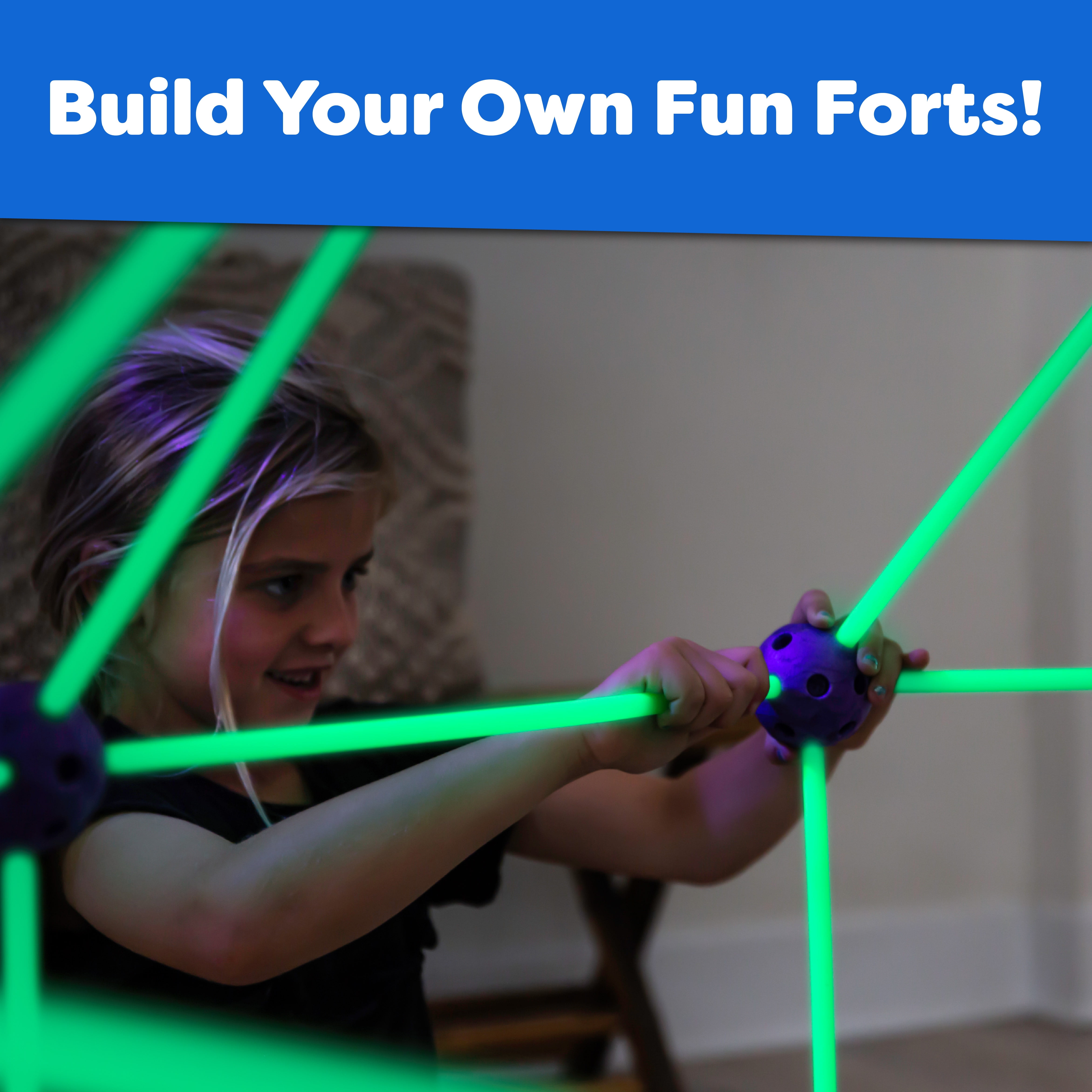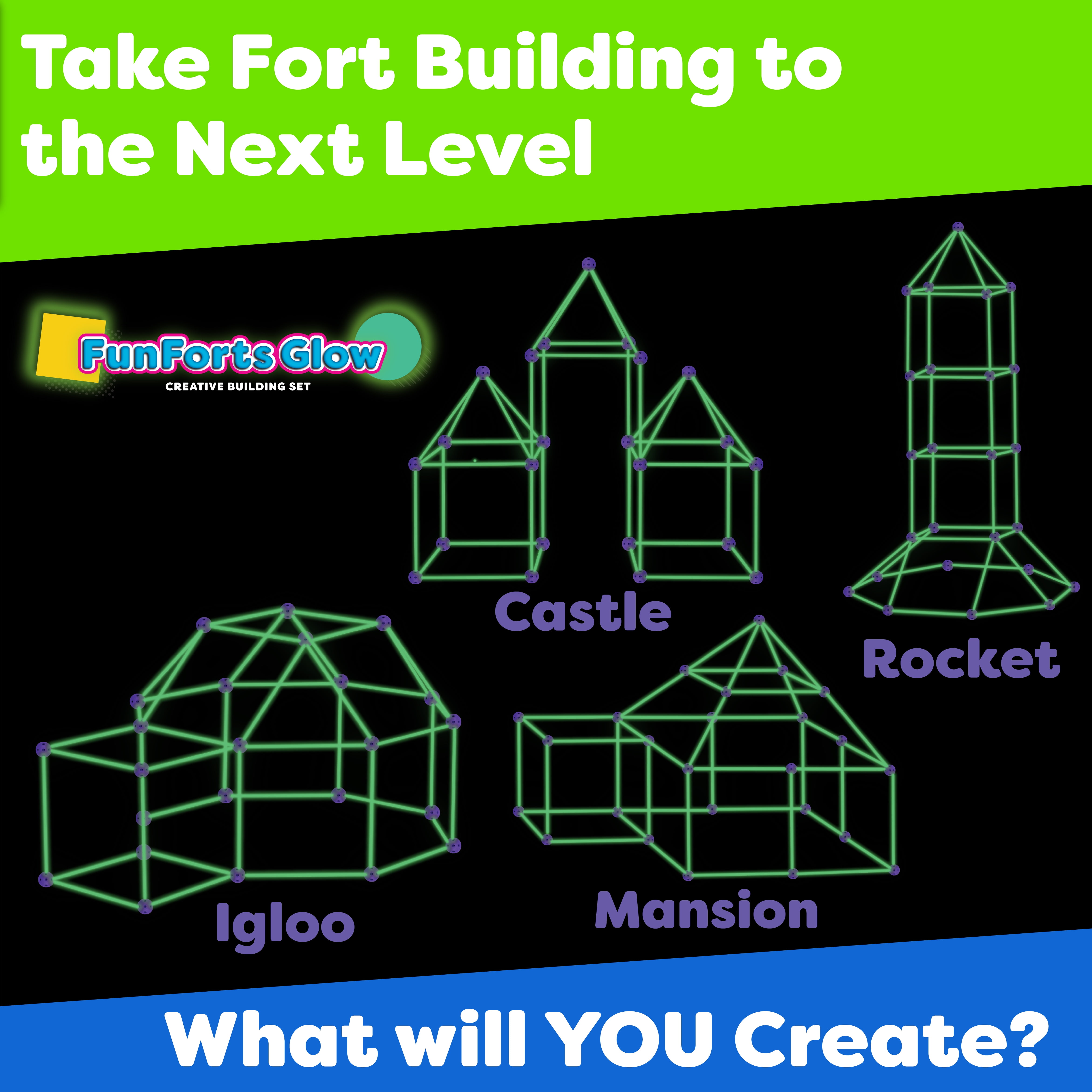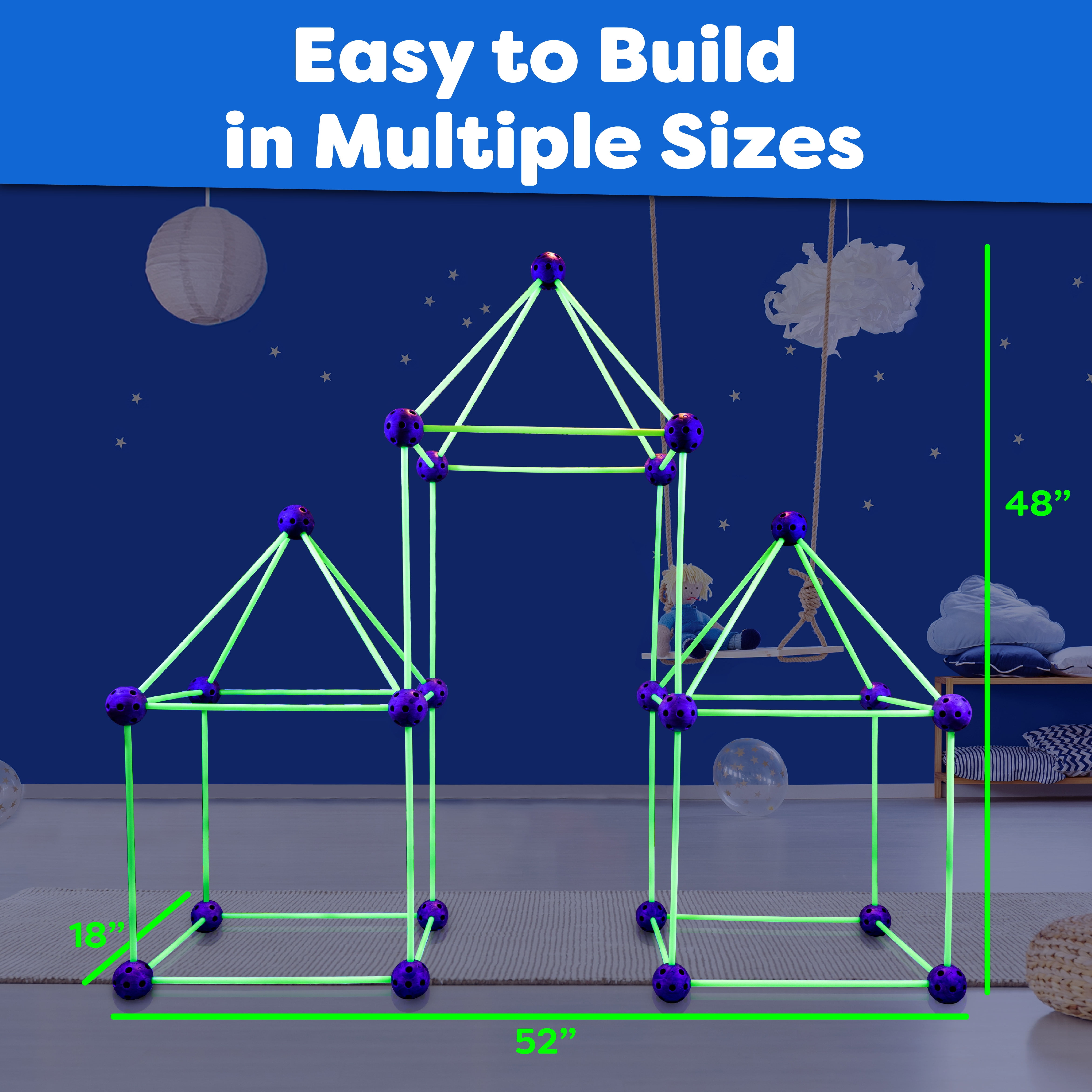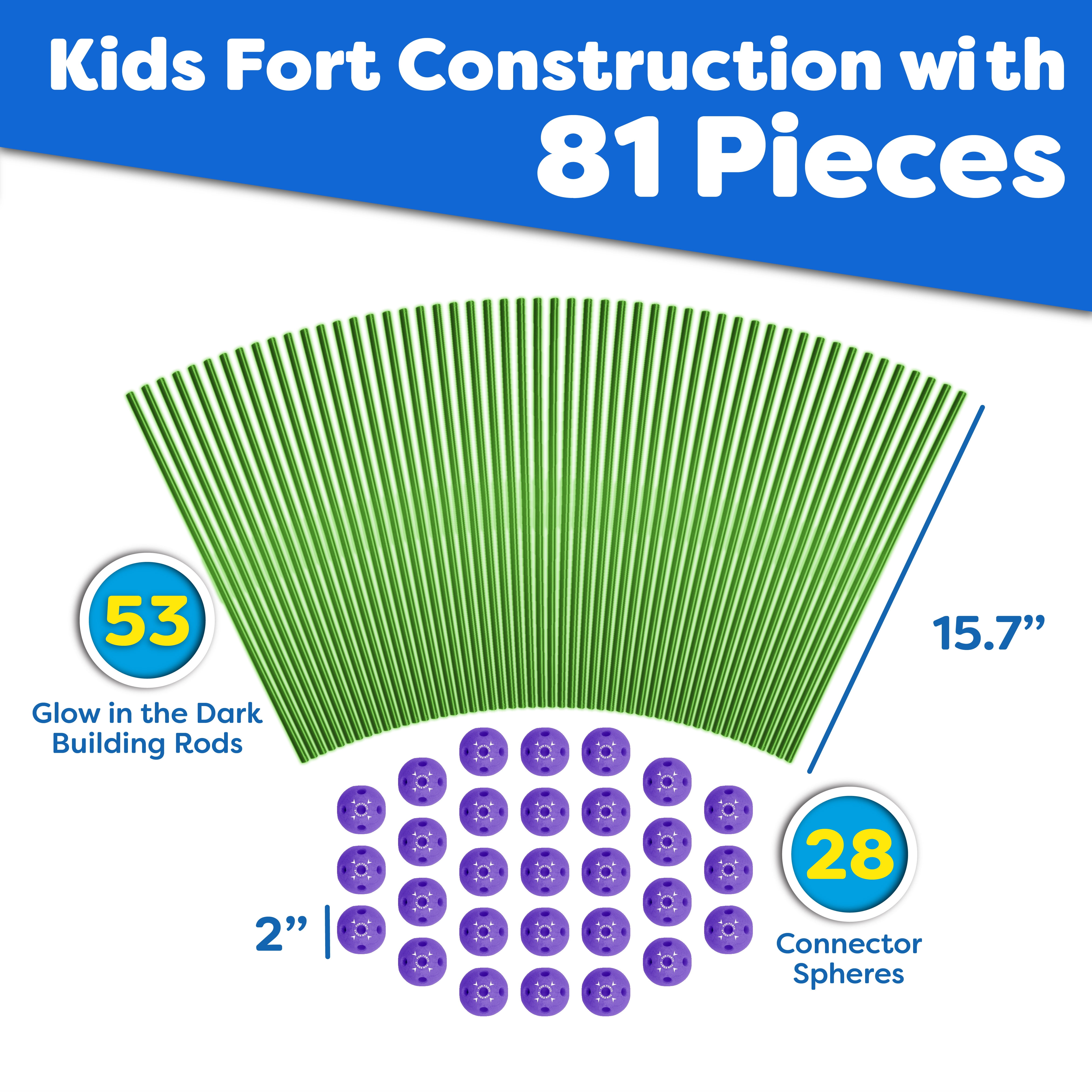 GLOW IN THE DARK GIANT FORT BUILDER SET: Set includes 81 giant pieces (rods and spheres) for a unique fort-building experience BUILD COOL DESIGNS: Build rockets, houses, castles and more with this fort building kit STEM TOY FOR BOYS AND GIRLS: Learn basic engineering and building skills through Fun Forts playtime