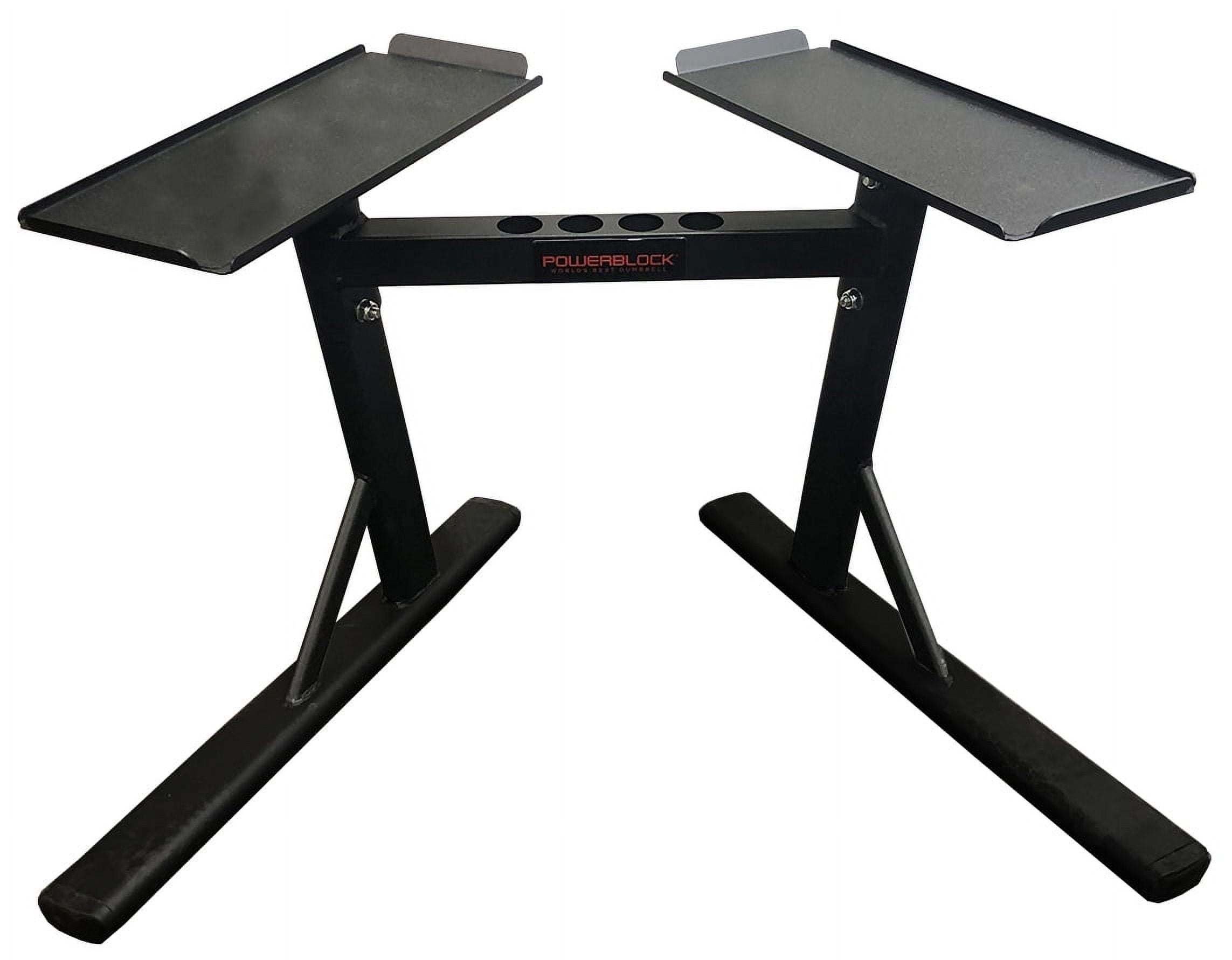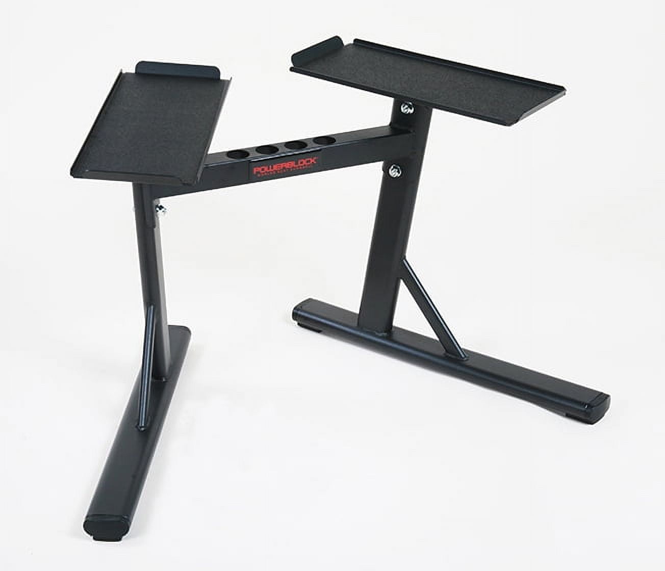 PowerBlock PowerMax Dumbbell Weight Stand Compact design for easy storage of PowerBlock Dumbbells Open design allows for comfortable access when removing weights Flat trays facilitate quick weight changes between sets Compatible with any PowerBlock set up to 90 lbs Includes storage for adder weights