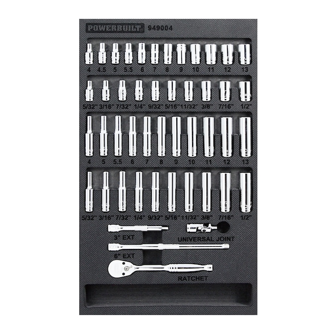 Powerbuilt 1/4-in Drive Standard (SAE) and Metric Shallow/Deep Socket Set (47-Pieces)