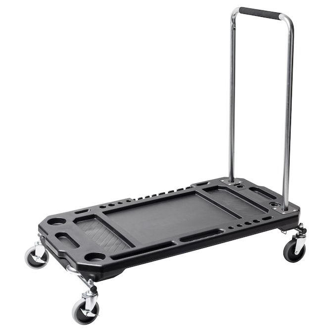 - As a cart with the extended handle, it can also hold 330 lbs and offers easy handling with four 4″ swivel ball-bearing wheels, with brakes on two wheels for stability.