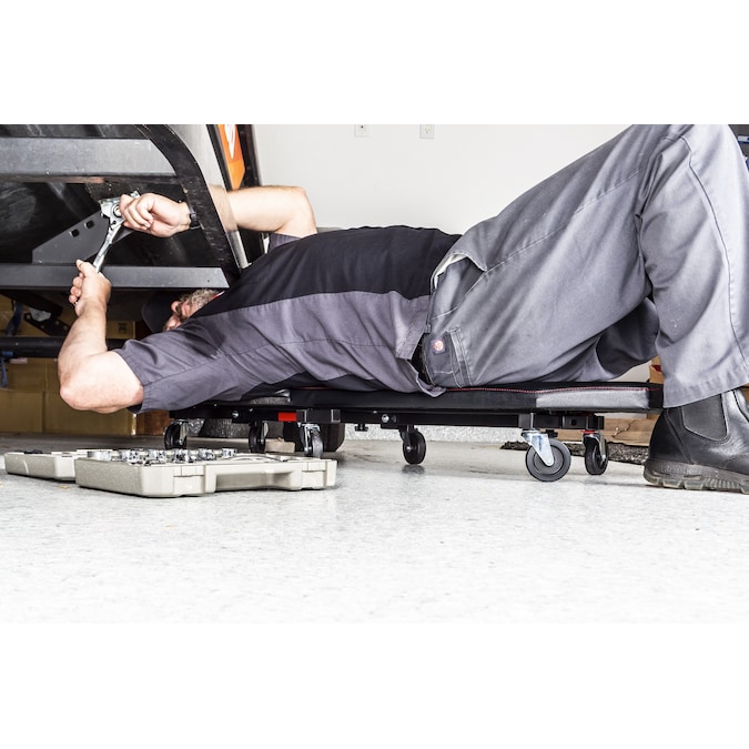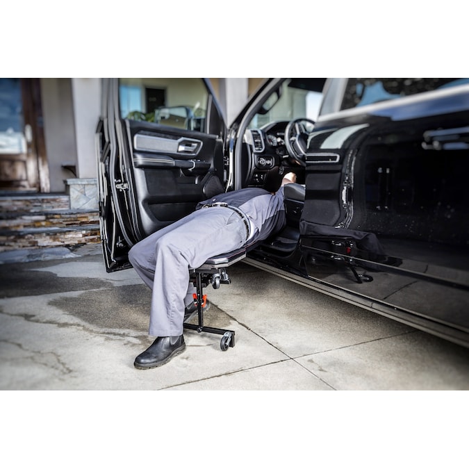 - When used as an under-dash creeper, its spring-loaded height adjustment lets you work comfortably inside the vehicle, and it remains stable with disengaged caster wheels.