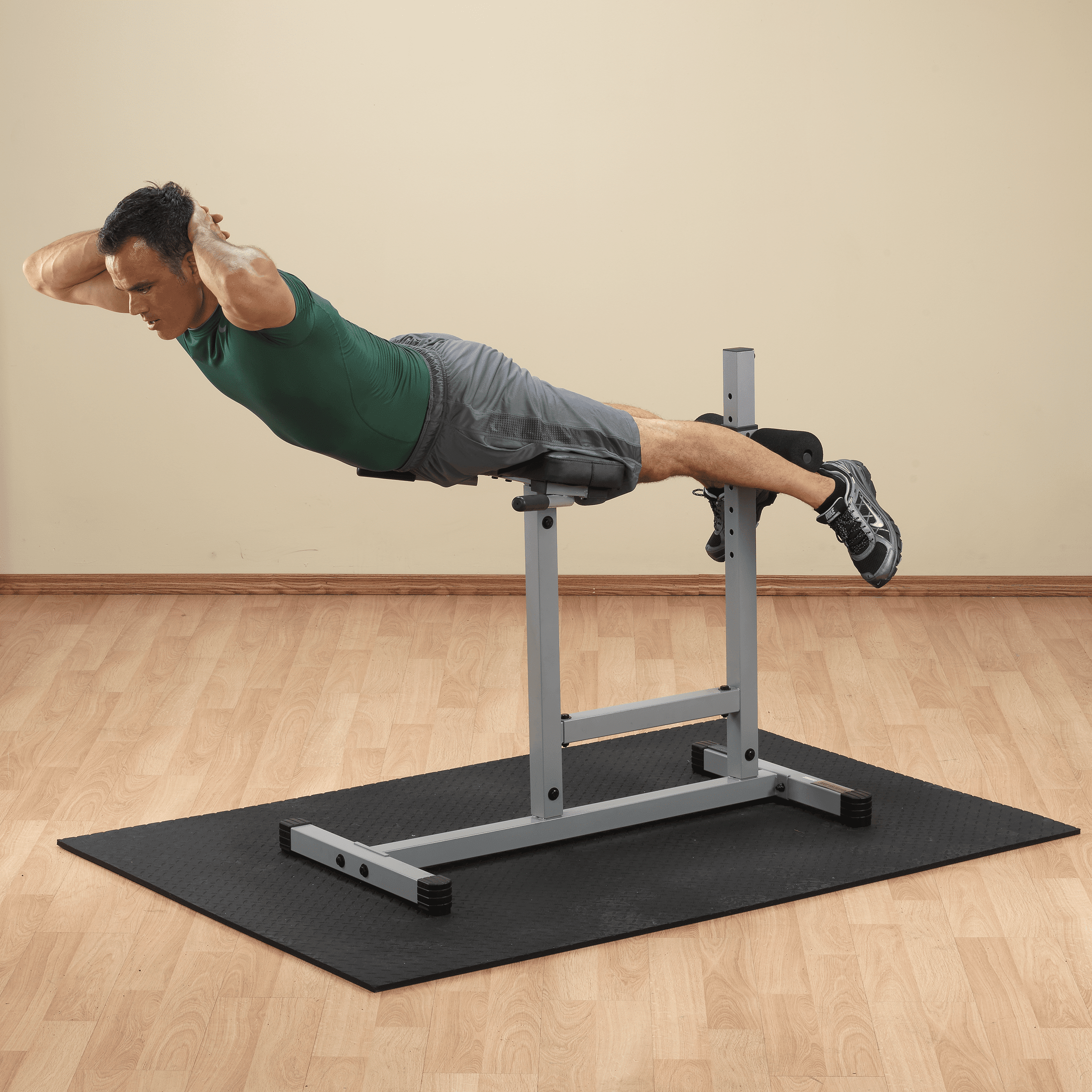 PowerLine by Body-Solid Roman Chair / Back Hyperextension. Your abs and lower back are crucial to your everyday activities. You must keep them strong and tight to avoid painful injuries. This Roman Chair/Back Hyper lets you train abs, back, glutes and hams in complete comfort and safety.