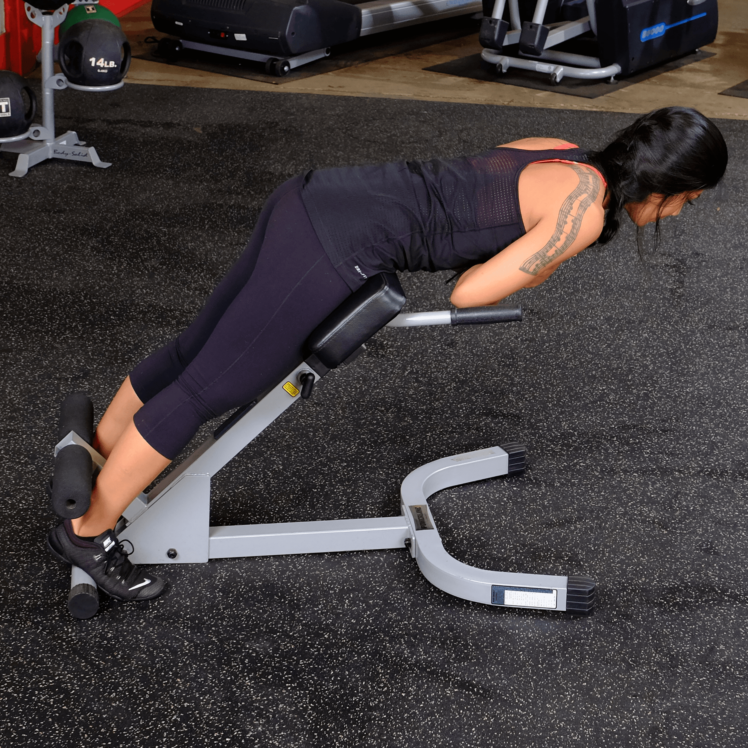 Relieves lower back pain Combination inverted back extension and oblique flexor Pads are double-stitched for maximum comfort and support 8″ foam rollers are over-sized for security The 4″ thick midsection pads are adjustable Fights compression fatigue Increases flexibility Improves circulation Strengthens Back and Abdominal Muscles Assembled Dimensions: 33″H x 42″L x 26″W