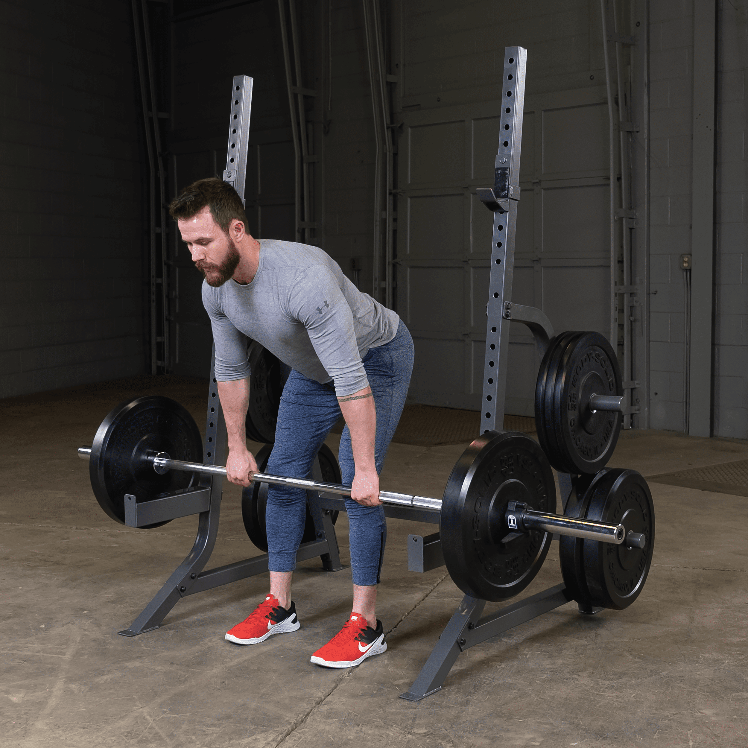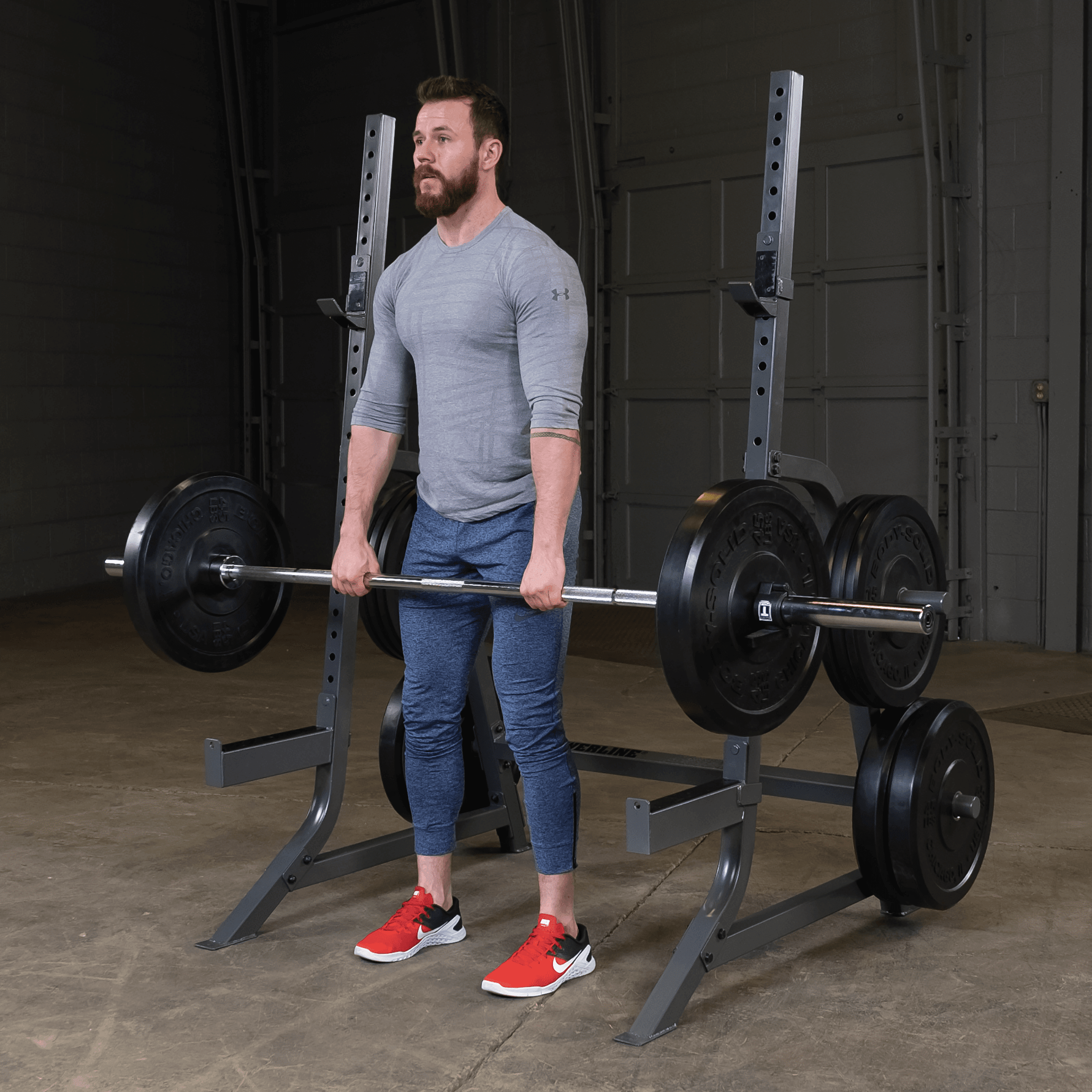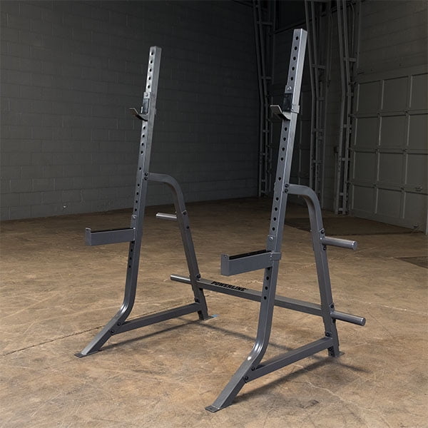 Powerline by Body-Solid’s PMP150 Multi-Press Rack is the perfect partner for users wanting to perform quality barbell movements with total safety. Significantly shorter than full cage power racks and half racks, the PMP150 does not compromise quality. This rack is built with a heavy-duty 2”x 2” steel mainframe and can handle up to 600 lbs. The 7-degree reverse pitch accommodates natural lifting paths for biomechanically correct workouts. The PMP150 includes adjustable lift offs and over-sized safeties for peace of mind as well as Olympic weight storage posts for quick and easy access to your weights. Users can perform squats, shoulder presses, bench presses and more in the comfort of a stable and sturdy press rack.