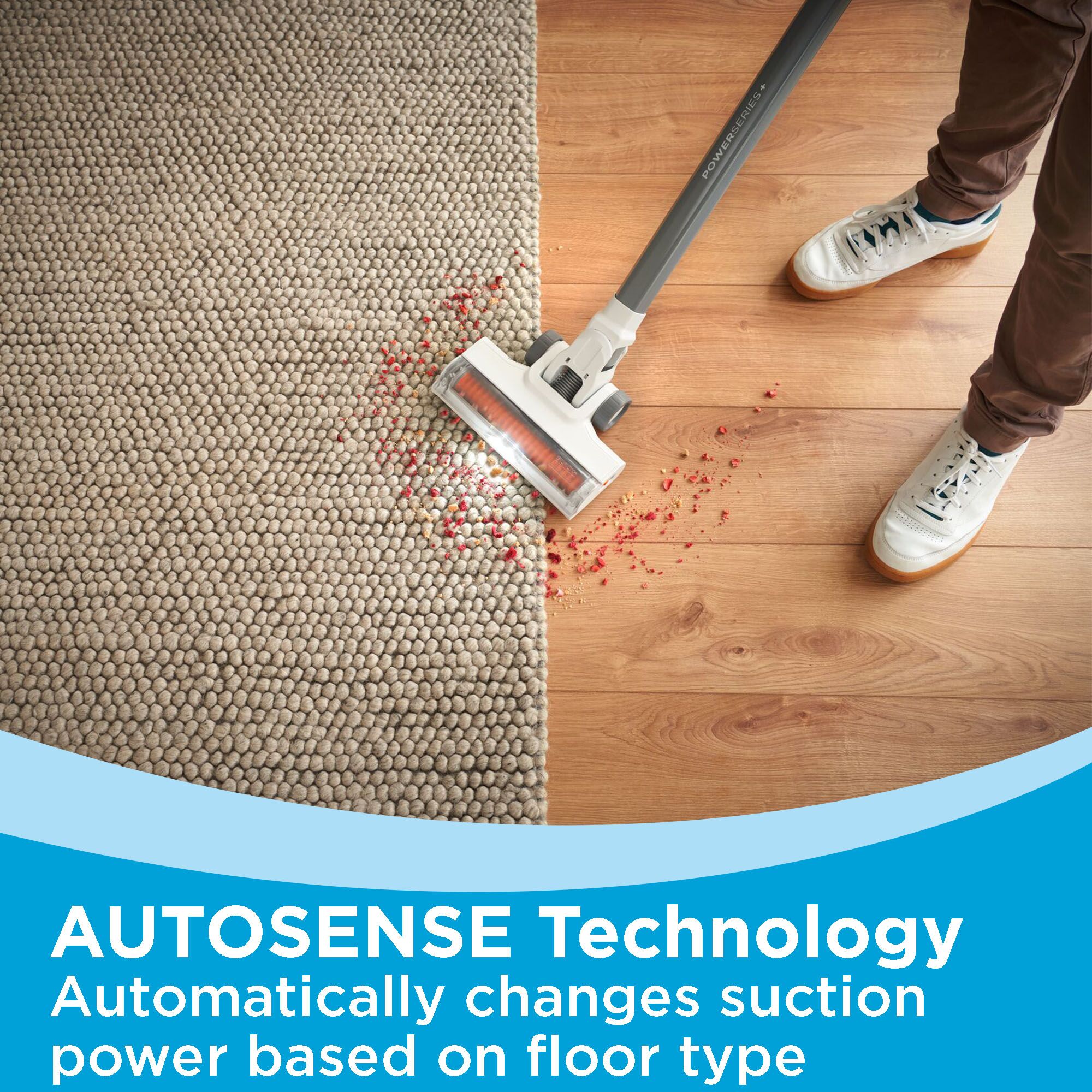 Clean up the big messes and keep your home tidy with the POWERSERIES+™ 20V MAX* Cordless Stick Vacuum. Made for large spills, you can do more cleaning with up to 25% more pickup on carpet* and up to 44 minutes of runtime. Depending on the type of floor, the high-tech POWERSERIES+™ vacuum automatically adapts its suction power with AUTOSENSE™ technology while its cyclonic filtration system helps to keep the filter clean for pro-level performance. Hair, fur, and debris are typically hard to pick up, but the anti-tangle brush bar and integrated LED floorhead lights make vacuuming easy. Use the crevice tool and quickly transform it into a handheld vacuum to clean stairs and furniture, lie it flat to vacuum clean under beds and couches, and store when all work is done with this vacuum’s convenient, self-standing capability.