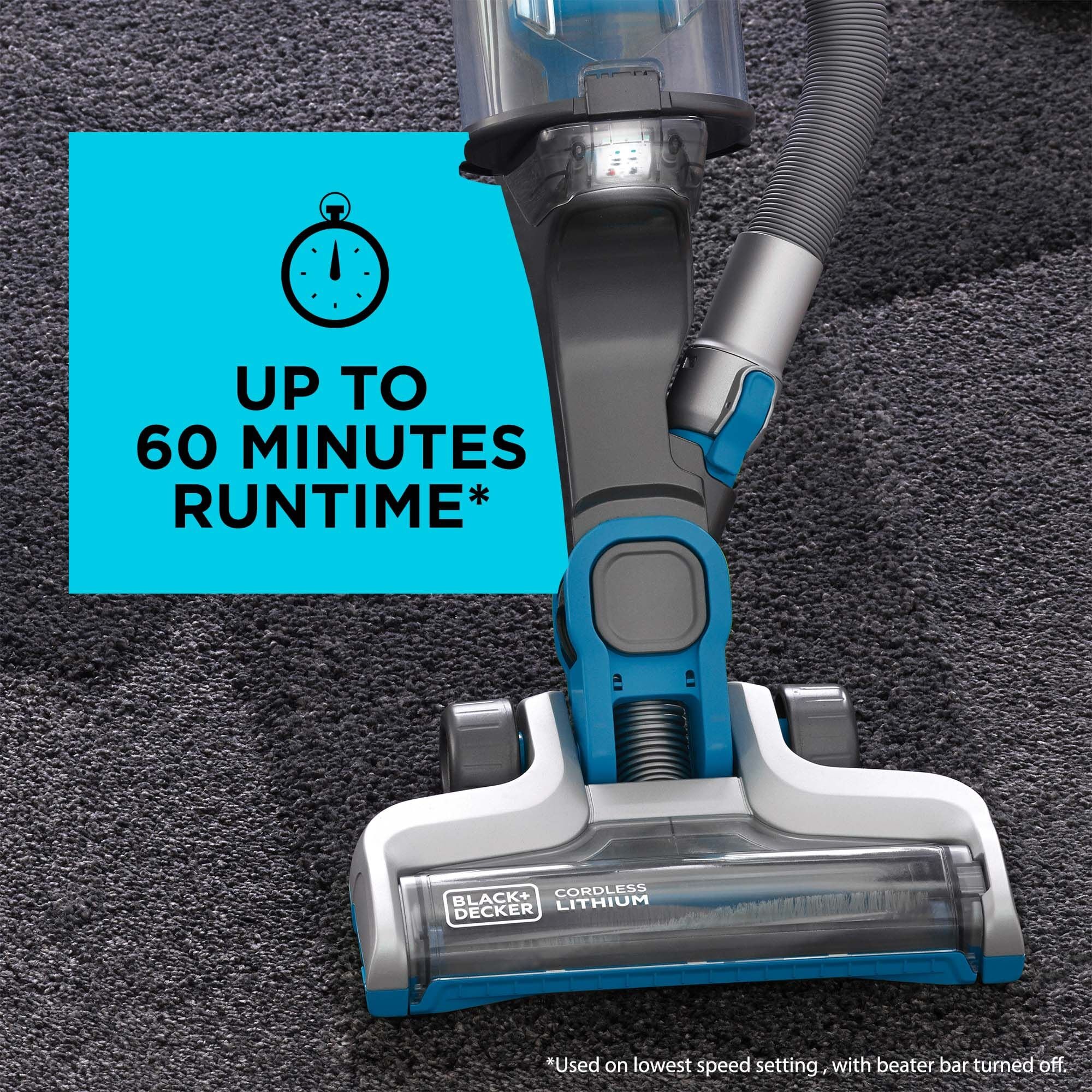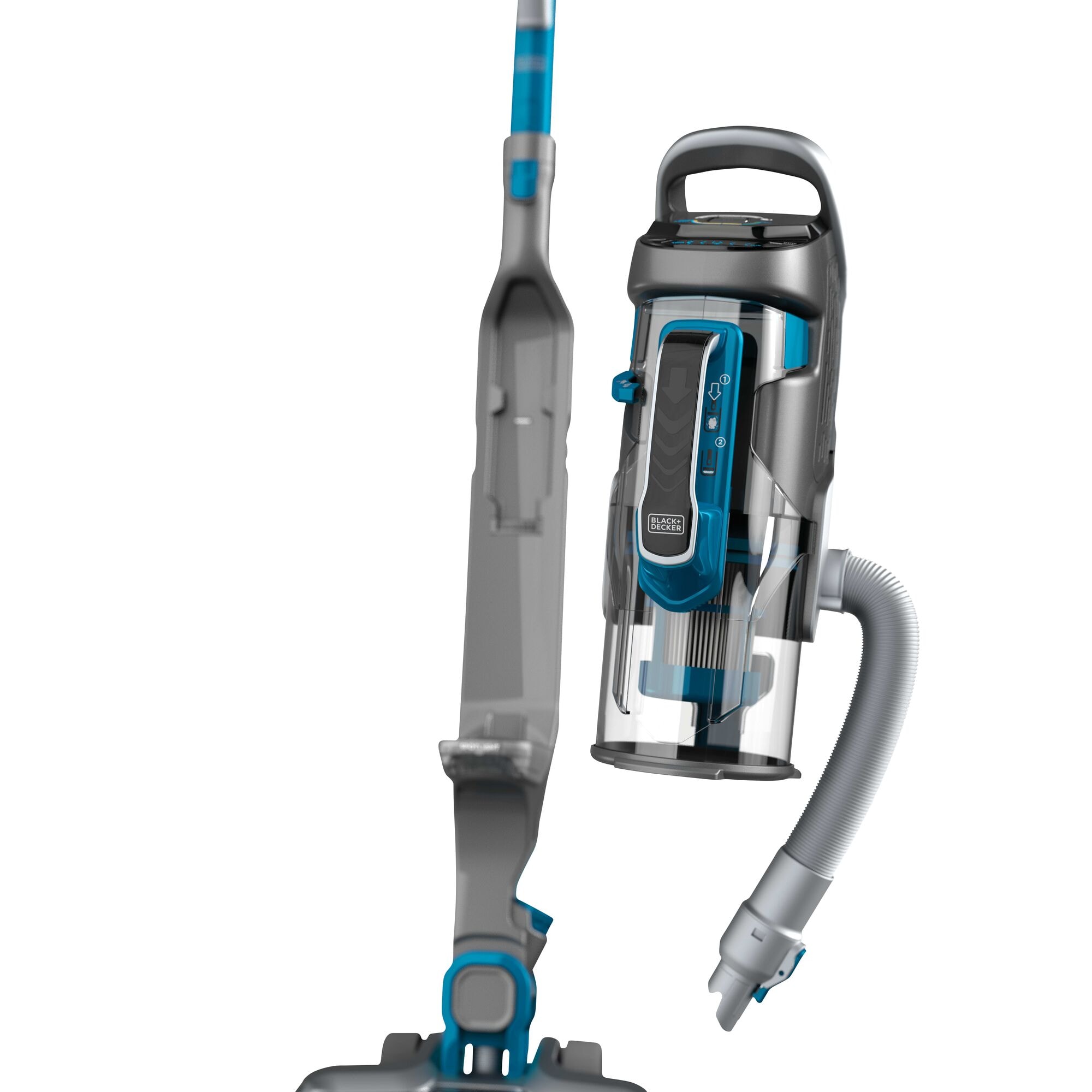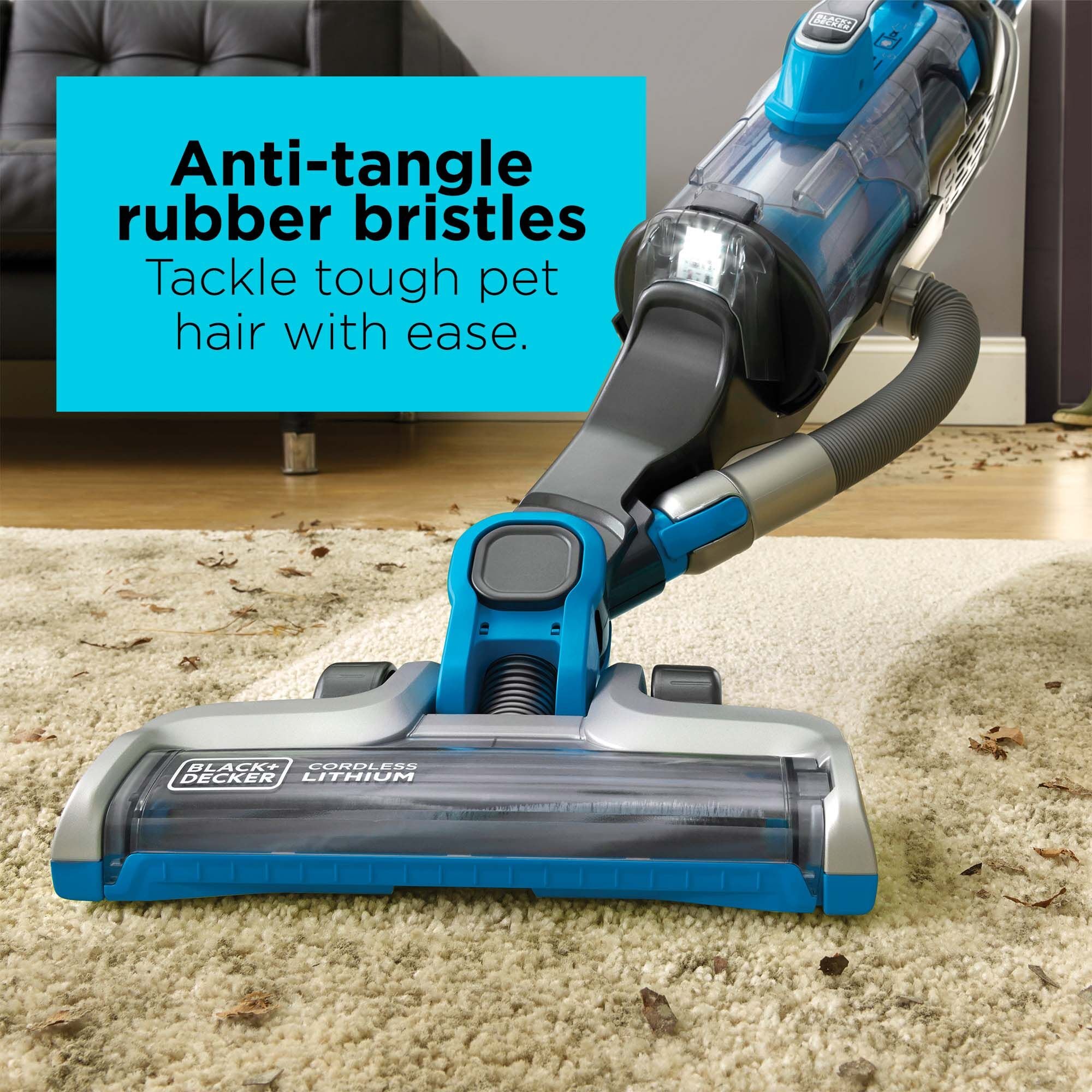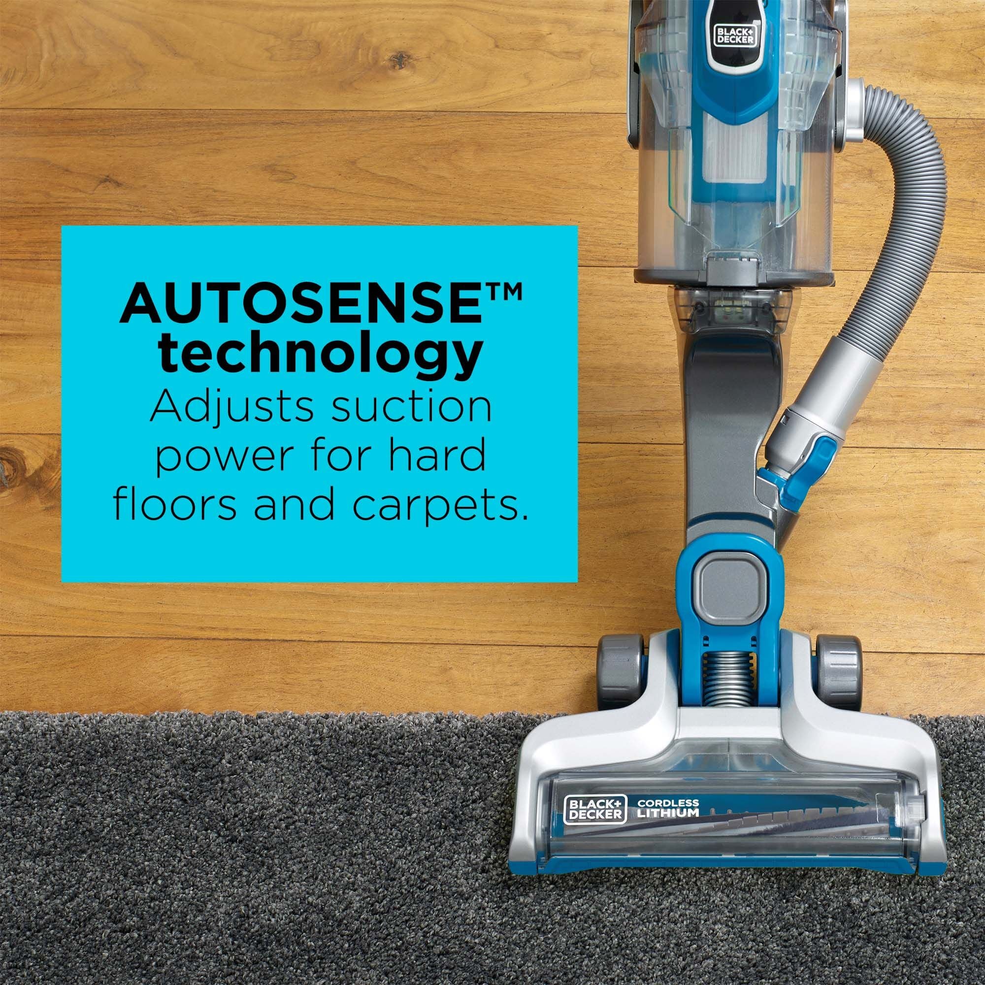 The BLACK+DECKER® HCUA525J POWERSERIES™ PRO 20V MAX* Lithium 2-in-1 Vacuum s one of our most powerful cordless vacuums. It delivers strong suction and up to 60 minutes of runtime so you can get the cleaning done. Detach the portable canister for complete floor-to-ceiling versatility. The canister also features a unique dust compactor so it can hold more dirt and you can empty less often ~ simply empty dirt and debris in a trash bin with the touch of a button. The SMARTECH™ features make cleaning easier: AUTOSENSE™ automatically adjusts suction from bare floor to thick carpet to optimize runtime, BATTERYSENSE shows you how much battery remains, and FILTERSENSE alerts you when it’s time to clean the filter. Swivel steering enhances maneuvera™bility, the low-profile design allows for cleaning hard to reach areas, and an LED light illuminates cleaning surfaces. With the touchpad controls, adjust suction speed, enable AUTOSENSE™, and control LED light. An Extension wand and 4-foot hose for overhead reach and versatility helps make cleaning easier. This vac includes a 3-in-1 accessory tool; 6-inch nozzle, crevice tool, and upholstery brush. The brush bar detaches easily for quick cleaning. Backed by BLACK+DECKER®’S 2 year limited warranty. Includes: 1) HCUA525J 2-in-2 Cordless Vacuum, 1) JACK™Plug charger, 1) 3-in-1 Accessory Tool, 1) CUABF10 washable filter kit.