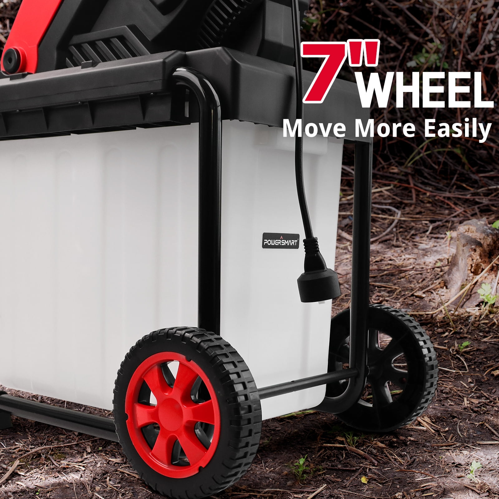 QUIET & STRONG: The PowerSmart PS12A Wood Chipper runs quietly and powerfully with its 15-Amp motor, shredding branches up to 1.5 inches thick. COMPOST-READY: Perfect for composting, it turns leaves, twigs, and clippings into mulch for your garden. LIGHTWEIGHT & EASY TO MOVE: Weighing only 31 lbs and with 7-inch wheels, it’s super easy to roll around your yard. SAFETY FIRST: Built with a locking knob on the hopper for safe, worry-free use. PEACE OF MIND: Comes with a 2-year warranty and dedicated customer support.
