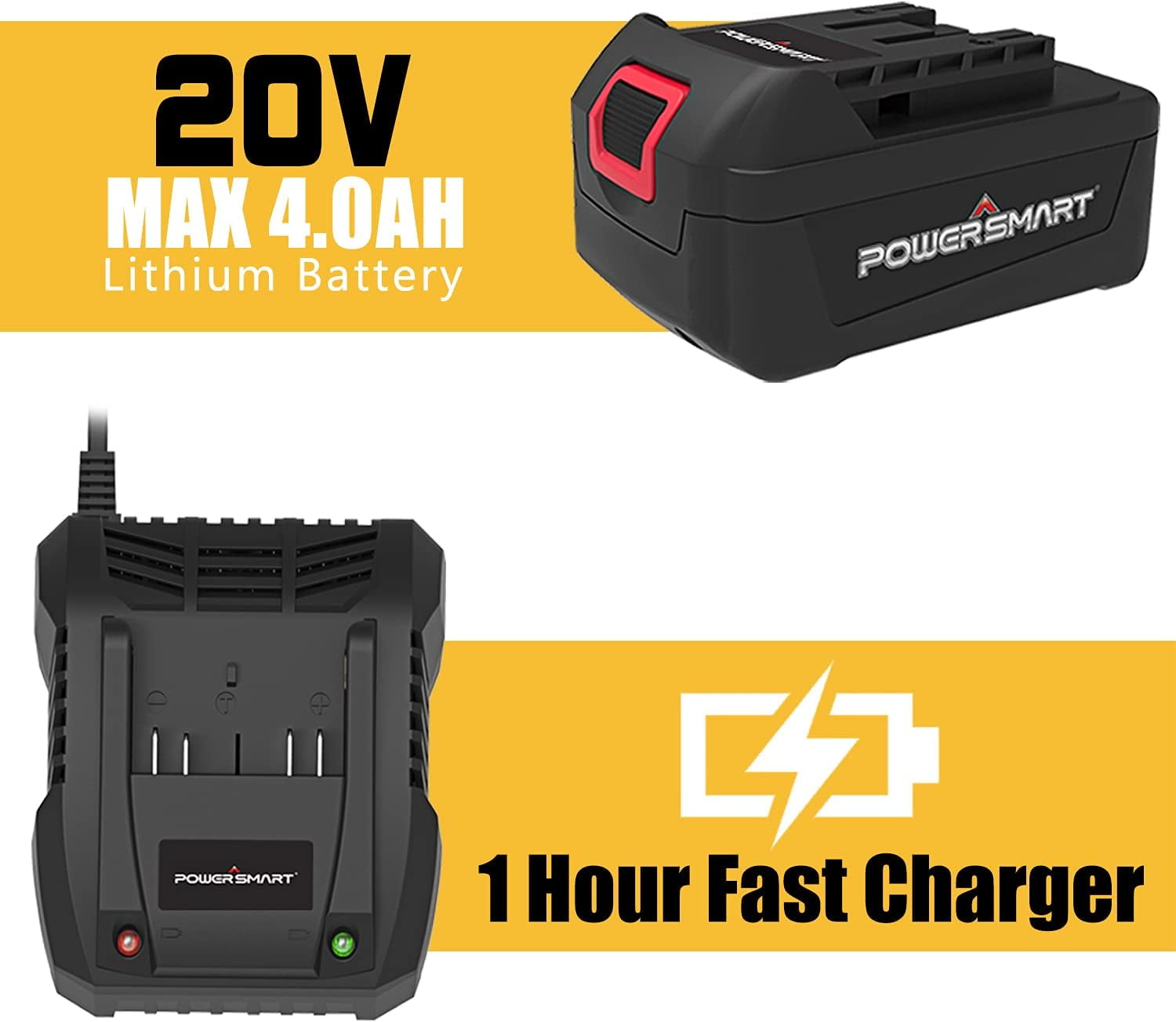 20V 4.0 Ah lithium-ion battery provides the power you need 12-in bar and chain rips through limbs quickly Auto oiler and tool-free tensioning system can provide hassle-free operation Easy tool-less chain tensioning Compatible with PowerSmart 20-Volt family of products