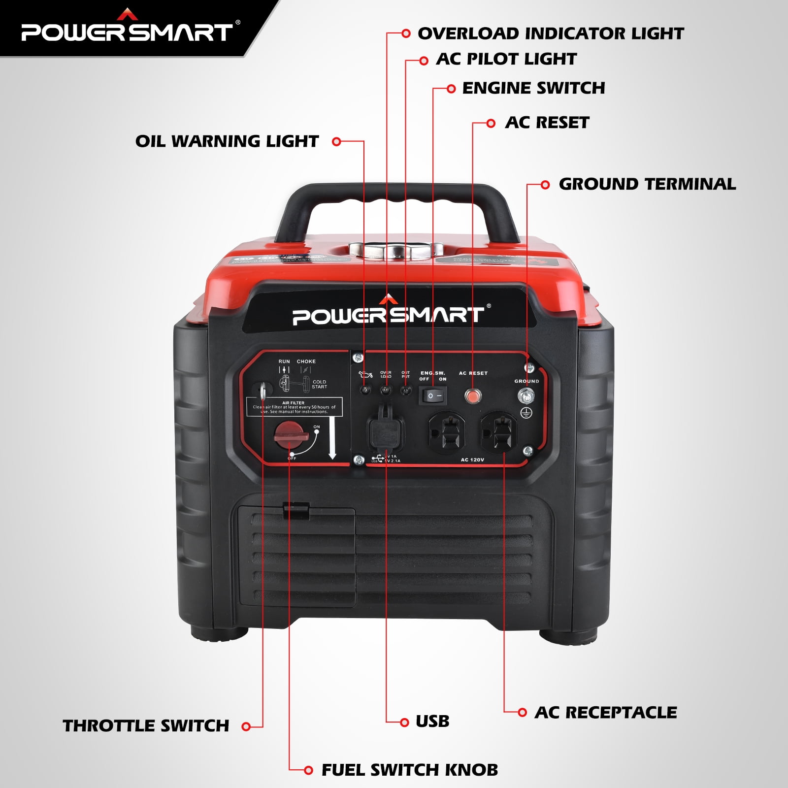 – Brand: PowerSmart – Power Output: 1500 Watts – Suitable for Outdoor Camping/Home Use – Low noise operation for quiet power generation – Inverter technology for clean and stable electricity – Compact and portable design for easy transportation – Efficient fuel consumption for extended runtimes – Usage Instructions: Add gas, start the generator, and connect your devices for on-the-go power. – Please ensure proper ventilation when using the generator in enclosed spaces. – Regular maintenance and oil changes are recommended for optimal performance. – Warranty: Contact PowerSmart for warranty details and customer support. With the PowerSmart Gas Inverter Generator, you can enjoy reliable and quiet power for all your outdoor adventures. Say goodbye to noisy generators and hello to convenient and eco-friendly energy solutions. Power up your next outdoor experience with PowerSmart! Fast shipping time: items usually arrive in 2-5 days 7 x 24h Customer Service and Technical Support 2-year warranty of the item