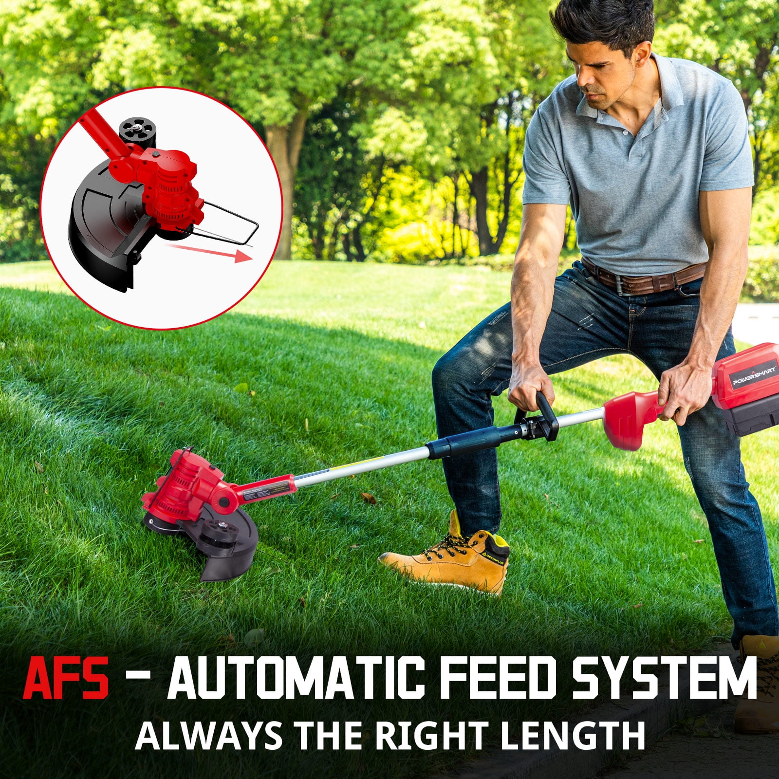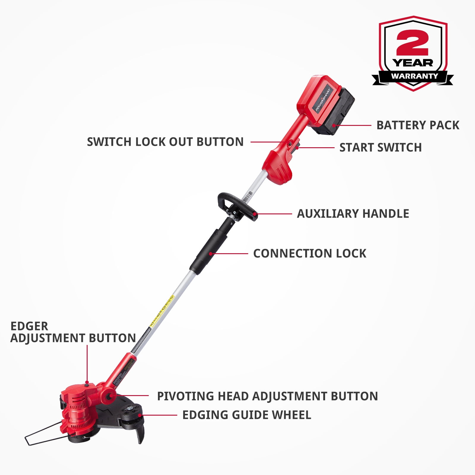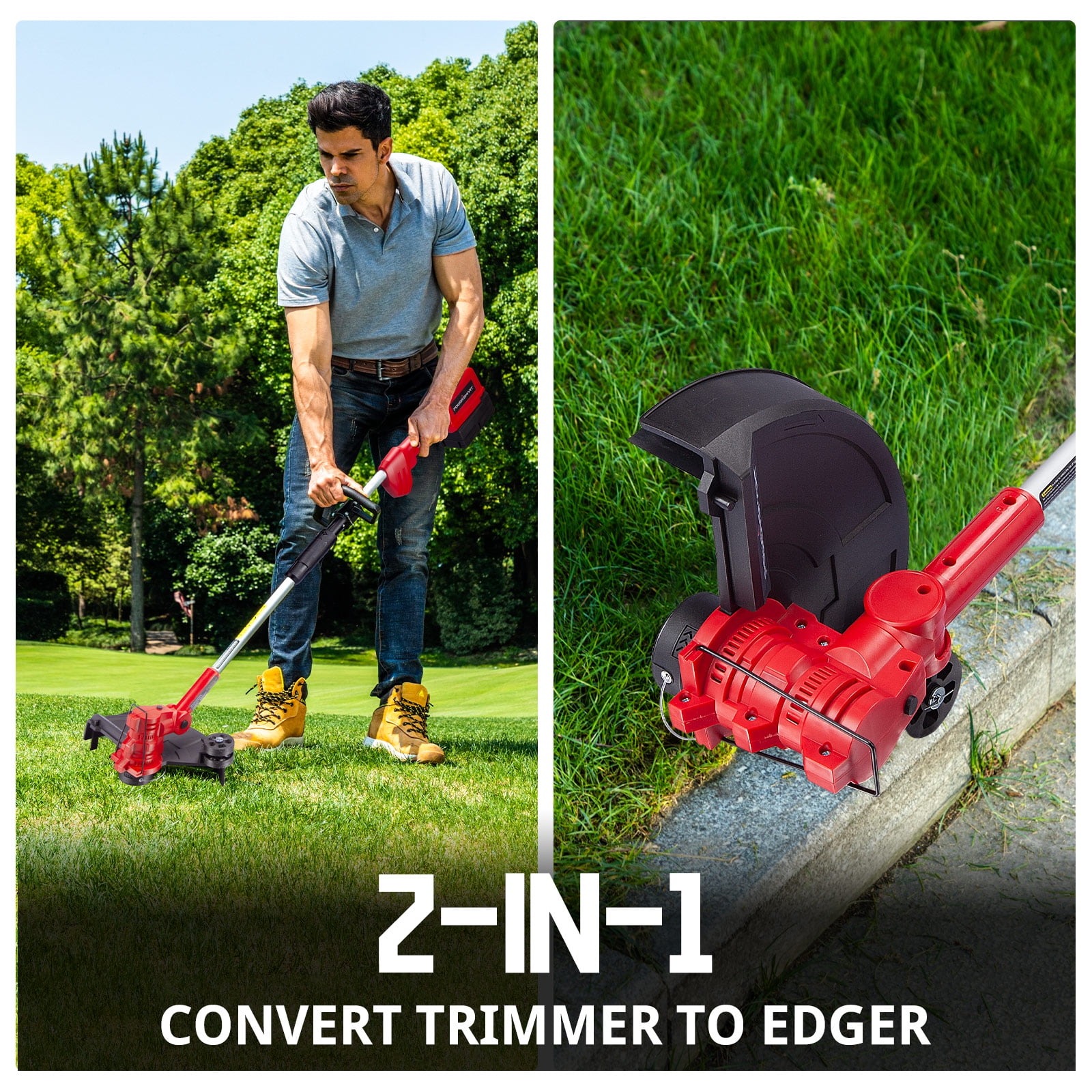 Powersmart DB2603RB:This 40V Cordless String Trimmer helps you get the job done conveniently that has adjustable telescopic pole and rotated pivoting handle. The 2 in 1 function makes it easy to switch from a trimmer to an edge. The head can be rotated so you don’t have to worry about hard-to-reach areas.It is covered by 2-year full warranty.Our customer-centric service team will respond any questions within 24 hours.