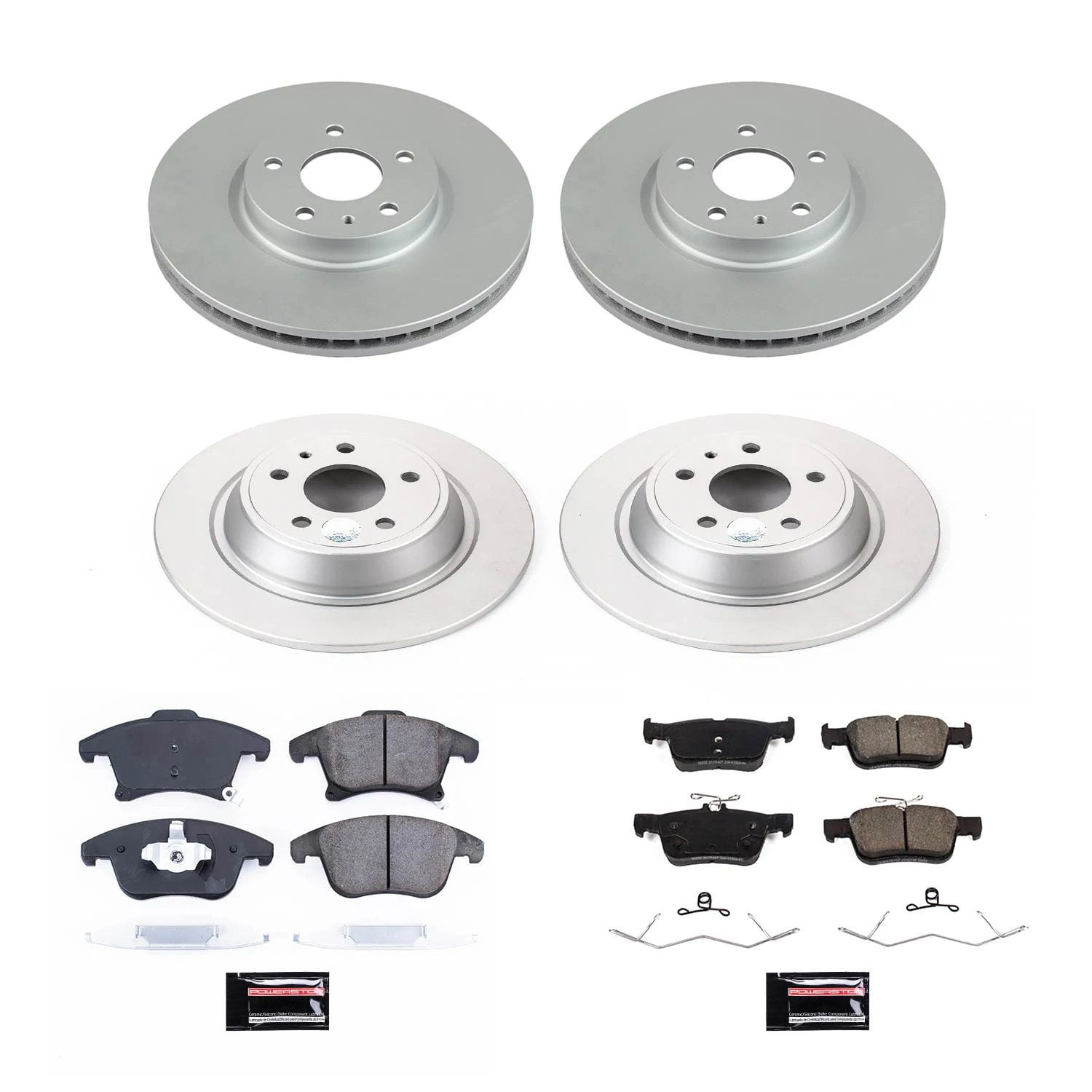 PowerStop Front and Rear Geomet Coated Brake Rotor and Pad Kit Fits: FORD Select Models CRK8532