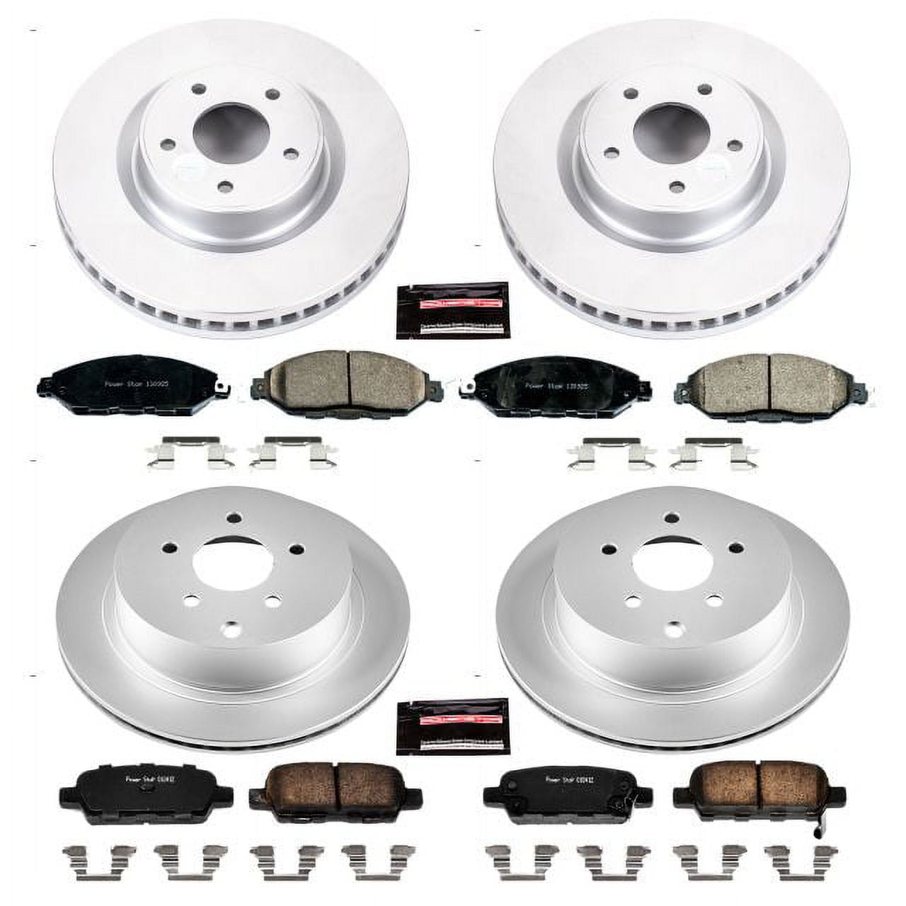 PowerStop Front and Rear Geomet Coated Brake Rotor and Pad Kit Fits: INFINITI NISSAN Select Models CRK6497