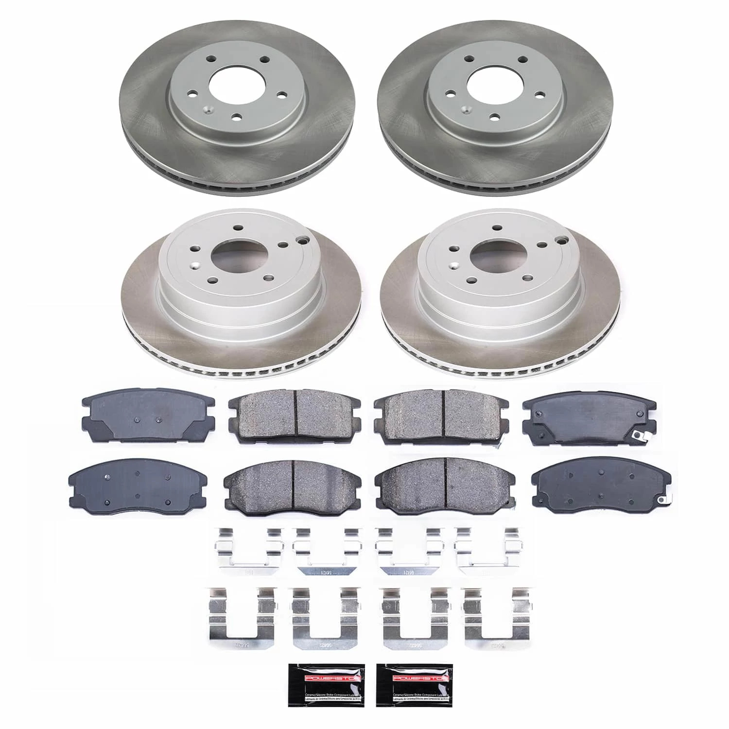 PowerStop Front and Rear Semi-Coated Rotor and Low-Dust Ceramic Brake Pad Kit SC2091