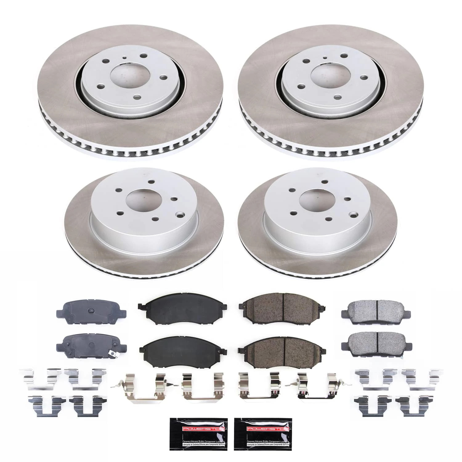 PowerStop Front and Rear Semi-Coated Rotor and Low-Dust Ceramic Brake Pad Kit SC4477