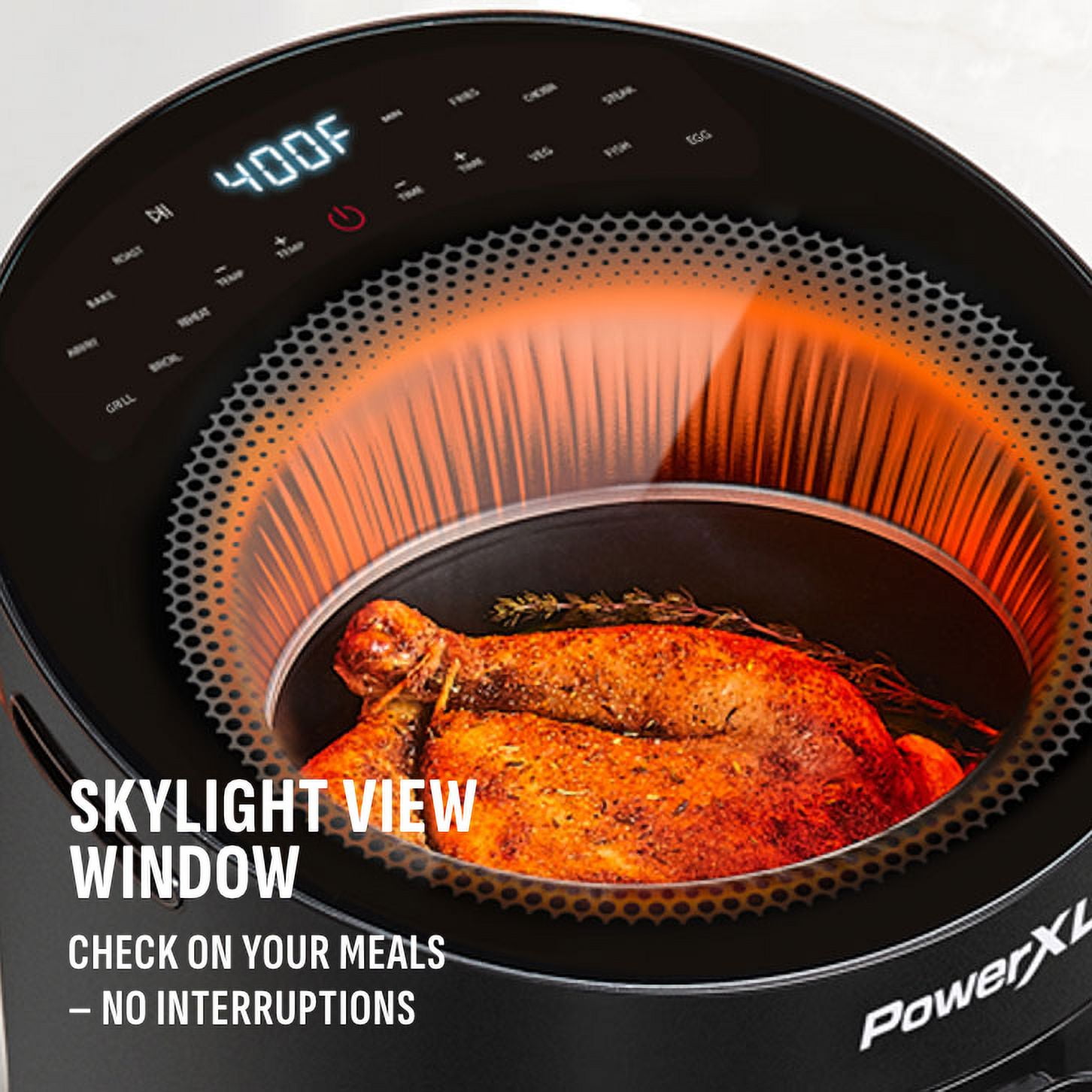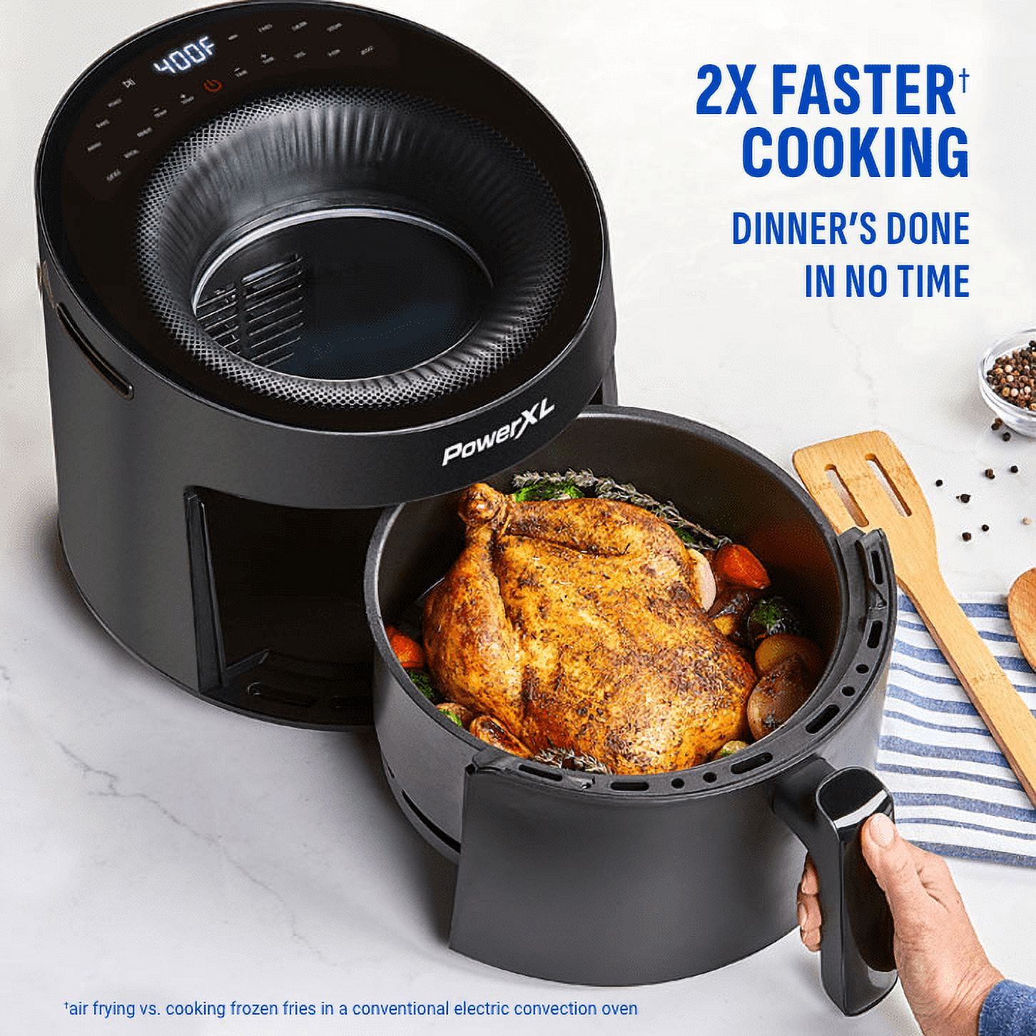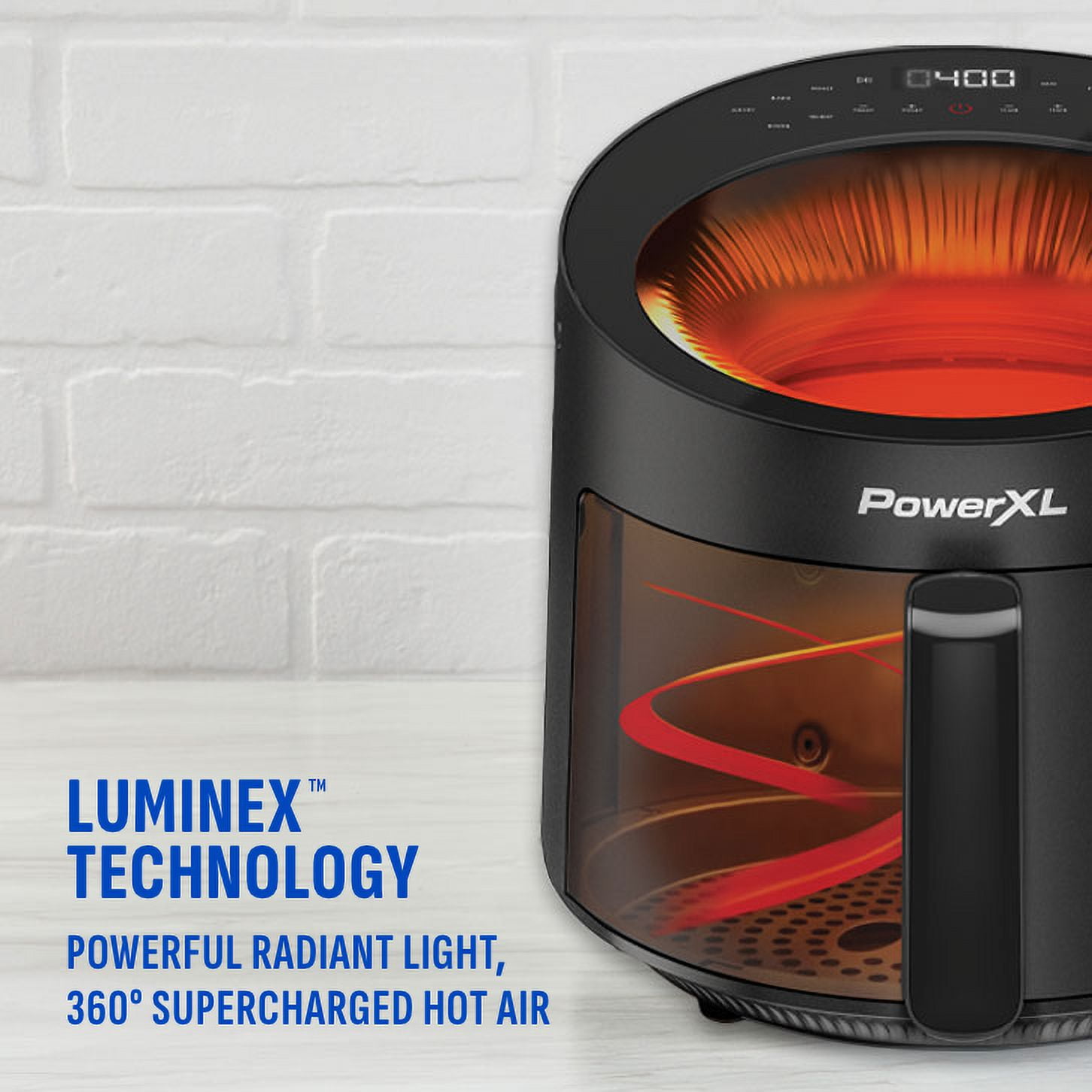 PowerXL LUMINEX 5.3 QT Radiant Light Air Fryer, Heats to 400°F in 2.4 Seconds, Auto Shut-off, 12 Quick-Touch Presets, Glass Skylight Window
