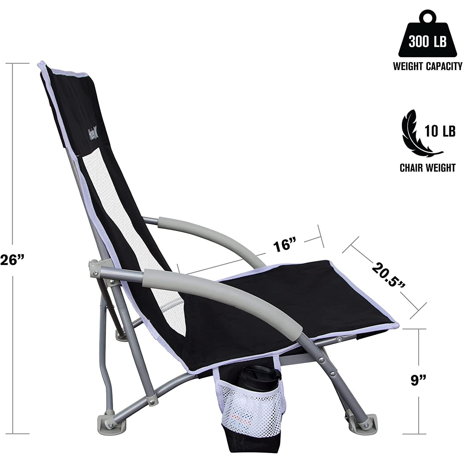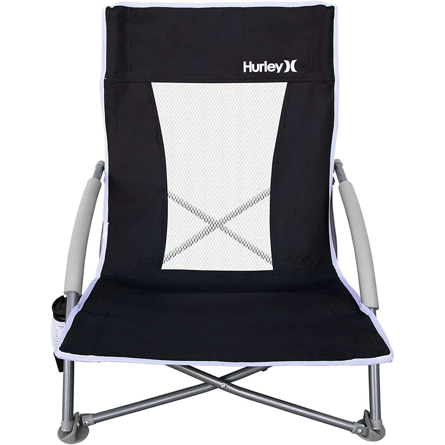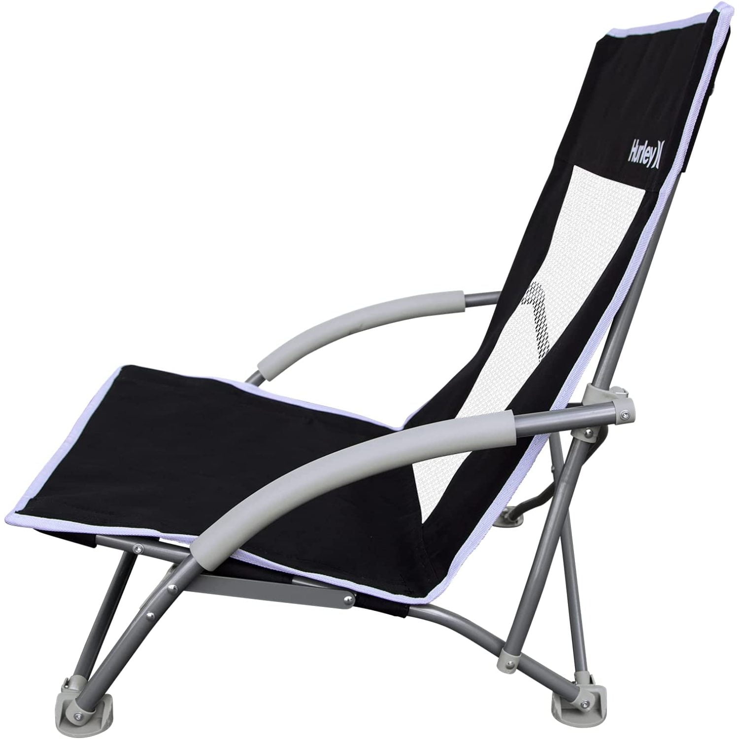 Sit back, relax, and stretch your legs in the Hurley Low Sling Beach Chair. With a 300-pound weight capacity, you can rest easy knowing this chair will hold up to the wear and tear of outdoor use. A comfortable recline design puts you low and close to the action. Padded foam armrests and cup holder add to your relaxation. Transport and store your chair with ease using the protective carry bag. This chair is ideal for beach outings, park or anywhere you need an outdoor seat.
