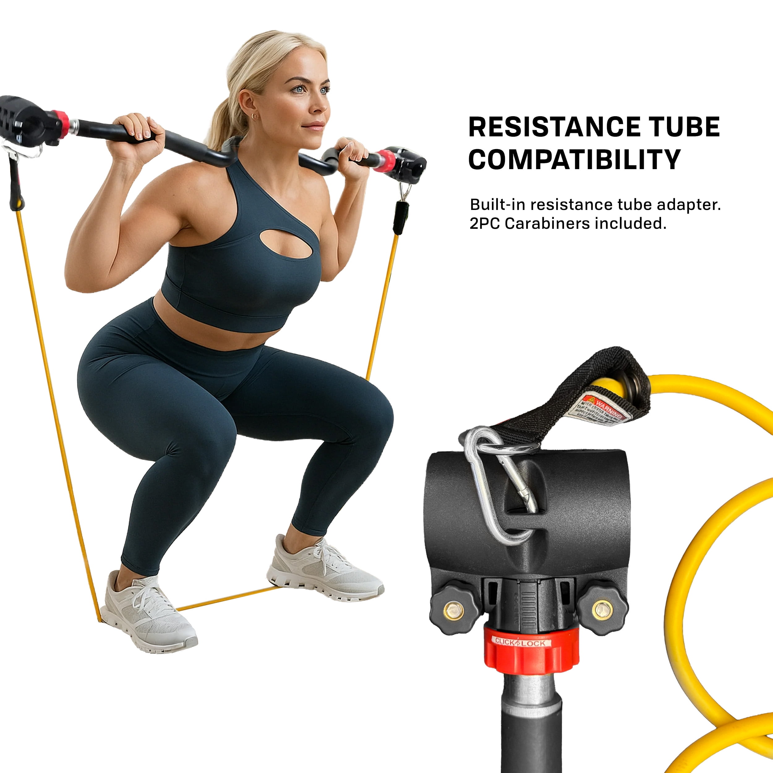 Two-piece training curl barbell, 1” dia x 44” L without the dumbbell clamps or 1″ x dia 39” with the dumbbell clamps Dumbbell clamps can accommodate curved or straight dumbbell handles up to 1.5 inch in diameter and minimum handle length of 4.5” Barbell weight: 5.11 lbs Hold up to 200lbs, 100 lbs each side Built-in resistance tube adapter Compatible with Hex Dumbbell, PRCTZ Adjustable dumbbells, Bowflex Select Tech, and more Patent Pending