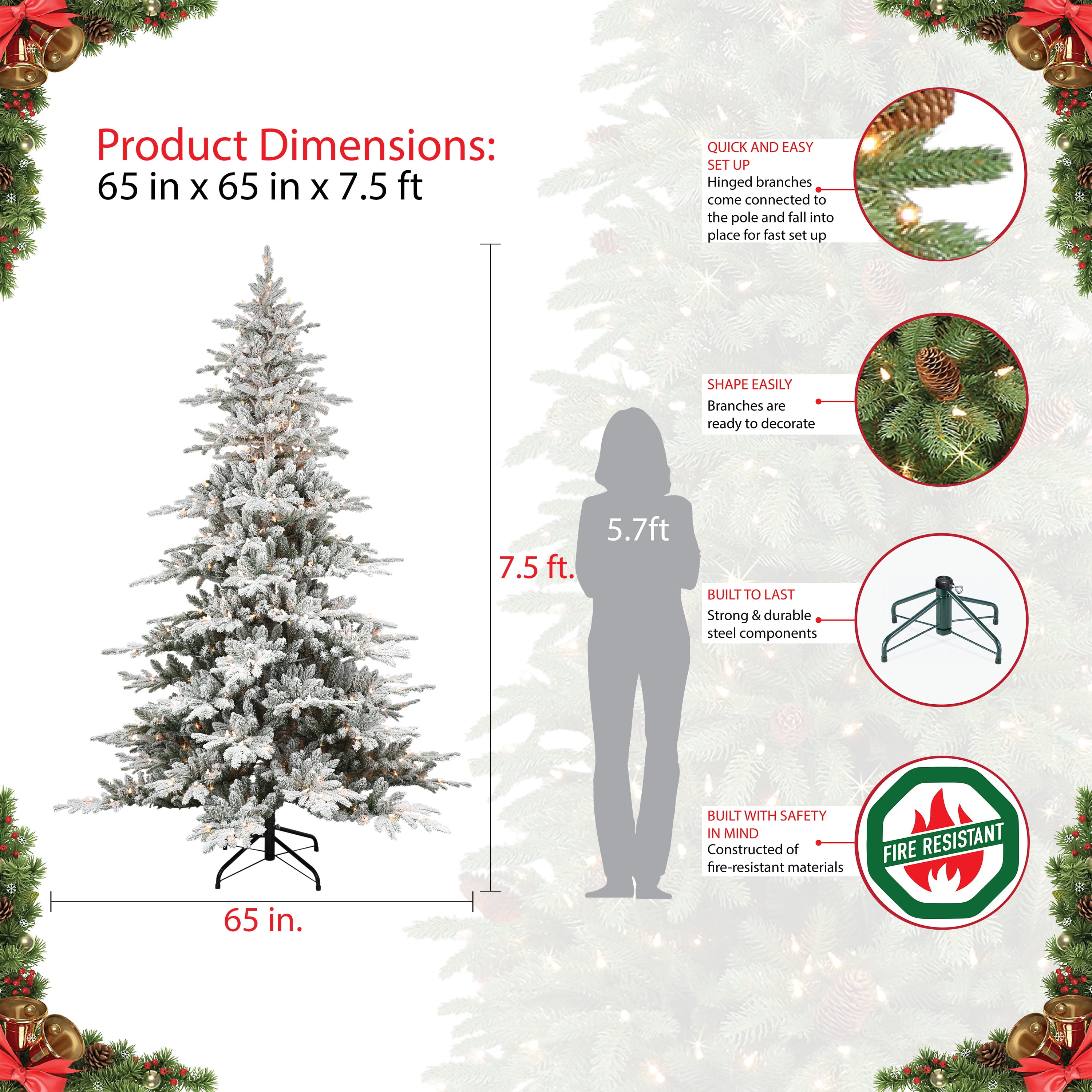 Pre-Lit 7.5′ Flocked Utah Fir Artificial Christmas Tree with 500 Lights, Green