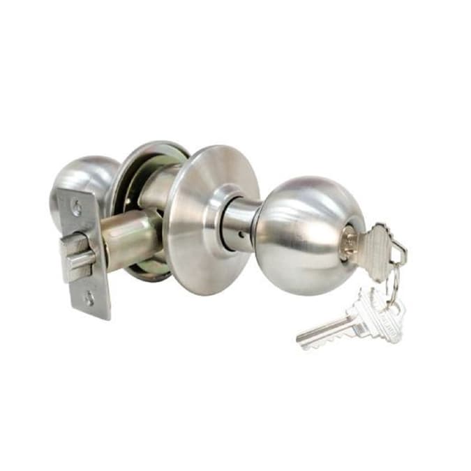 Easily install this Stainless Steel Grade Two Storeroom Door Knob with 12 SC1 Keys (Six-Pack, Keyed Alike). This is an easy DIY project. It features a durable, stainless-steel design along with a switch-style knob.