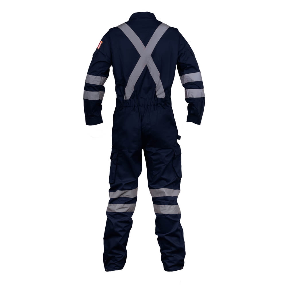 Premium High Visibility Hi Vis Coveralls with Leg Zipper (Small, Navy Blue)