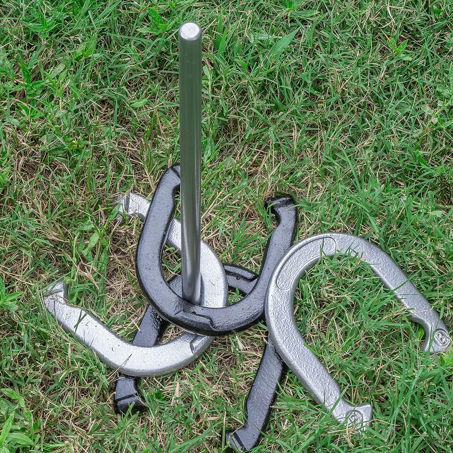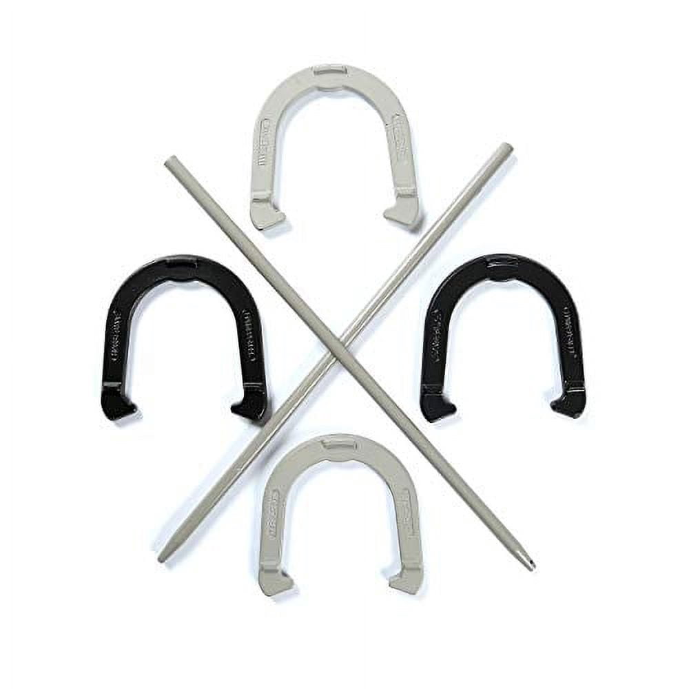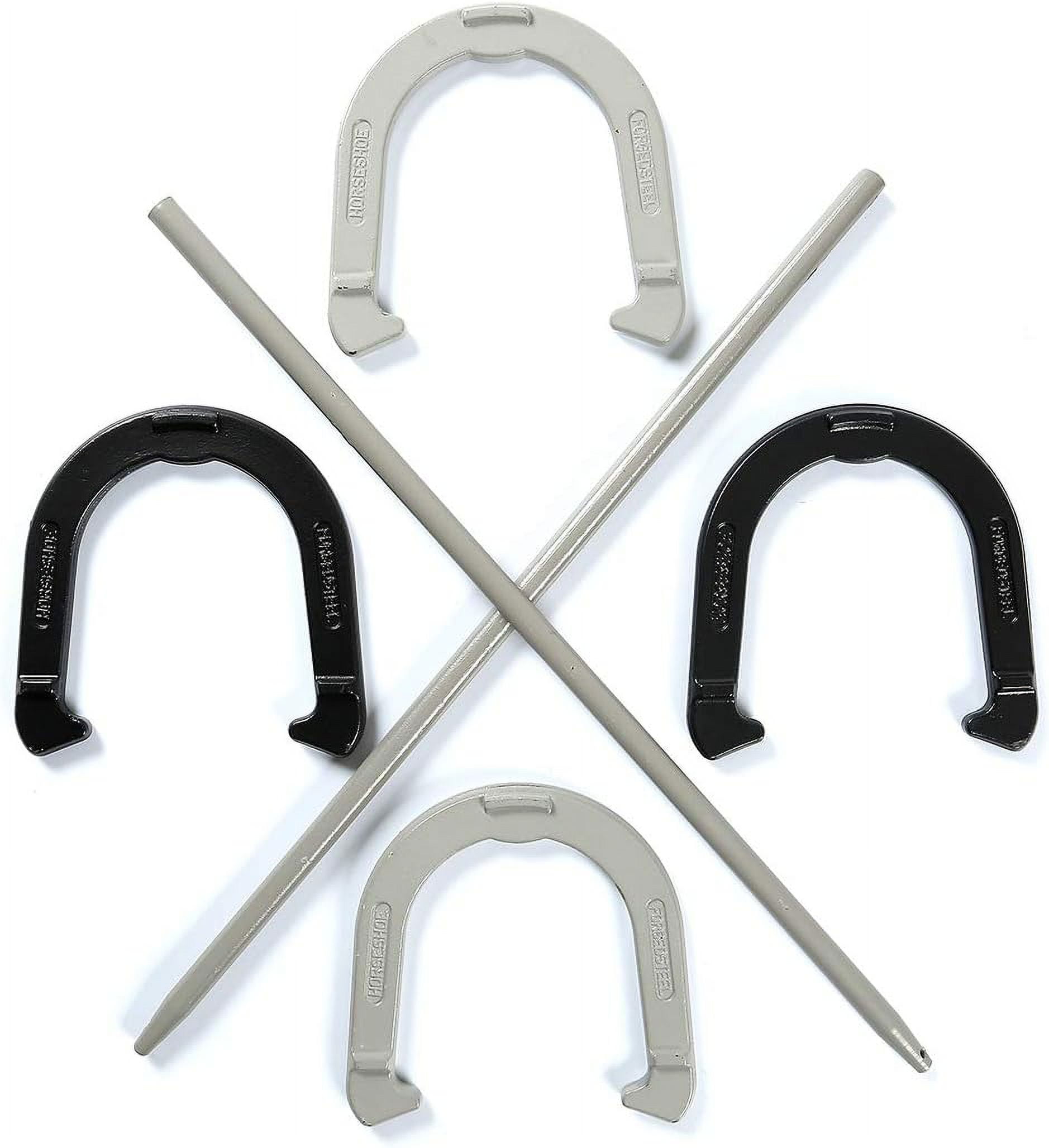 Premium Reinforced Carbon Steel Horseshoe Set With Carry Bag (Black and Gray)