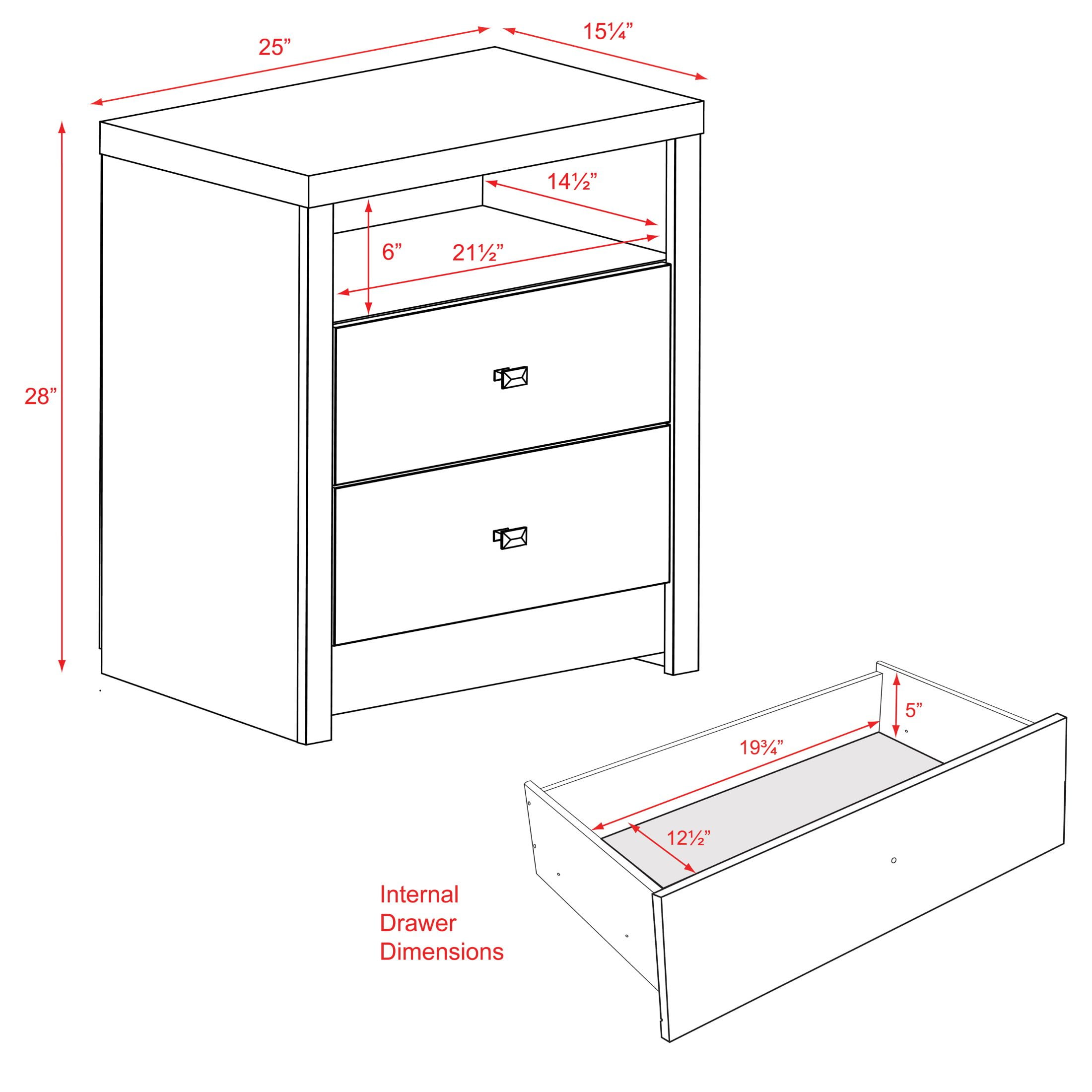 Prepac Calla 2-Drawer Tall Nightstand, White