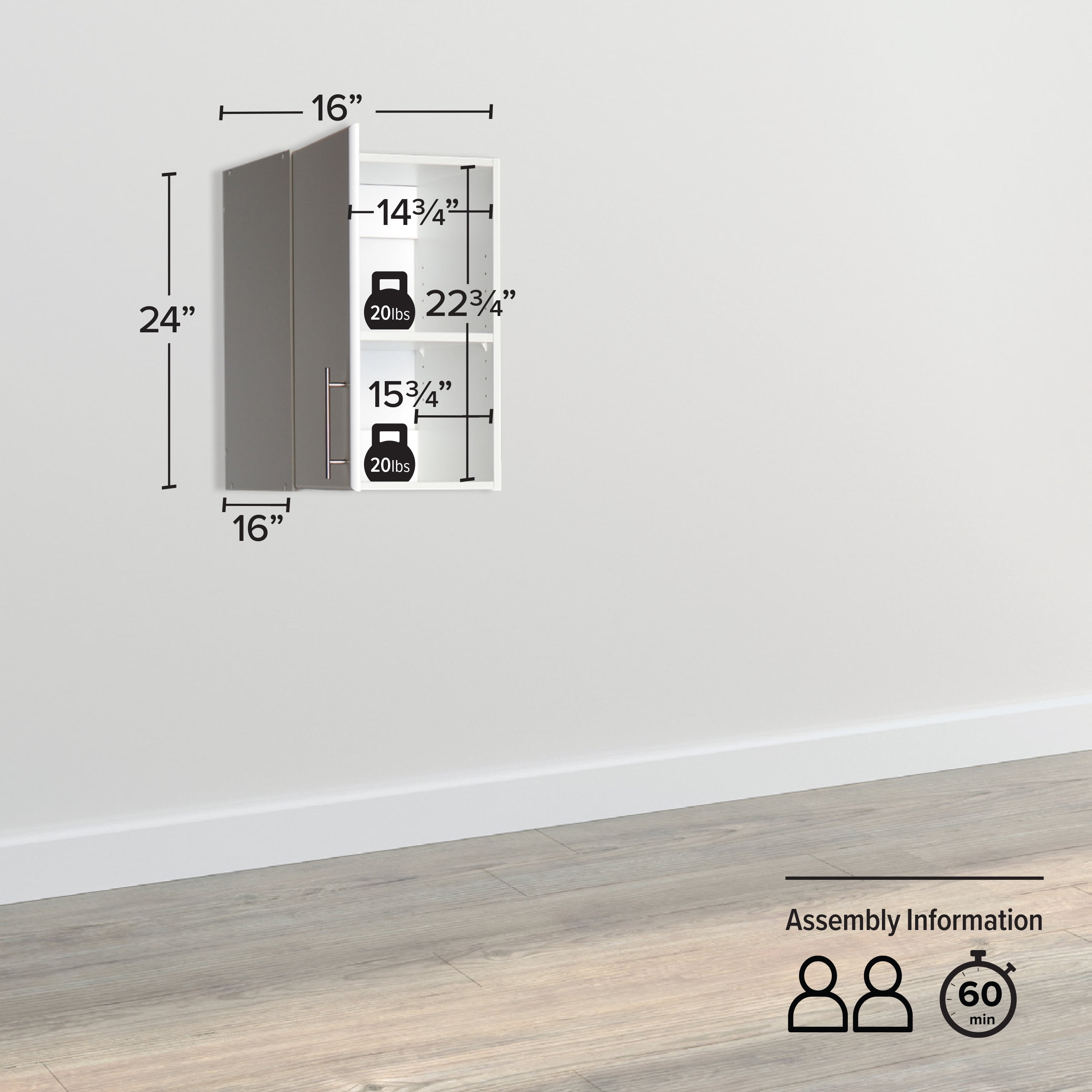 ASSEMBLED DIMENSIONS & WEIGHT: Cabinet- 16″ D x 16″ W x 24″ H, Total weight- 33 lbs., All pieces arrive ready to assemble in 1 Box FUNCTIONAL AND STYLISH: Storage cabinet with doors and shelves boasts clean lines and soft-edge doors with brushed metal pull handles all in a clean white finish DURABLE MATERIAL FOR LONG TERM USE: Laundry room cabinet is constructed from non-toxic (CARB 2 Compliant), laminated composite woods with a sturdy medium-density fiberboard backer for added strength- garage storage cabinet is easy to clean, water-proof and environmentally friendly DEEP STORAGE CABINET OFFERS MORE ROOM: 16″ D wall cabinet offers 34% more storage space than standard storage cabinets while the 1 adjustable shelf hold up to 20 lbs. EASY TO ASSEMBLE: Bathroom wall cabinet includes detailed, step-by-step instructions & all necessary parts- the laundry cabinet can typically be assembled in 1 hour or less with basic hand tools by 2 people MADE IN NORTH AMERICA: Prepac furniture products are proudly made in North America for trusted quality & reliability and backed by our knowledgeable North America based customer support team PART OF THE ELITE STORAGE CABINET COLLECTION: Whether you’re looking for one cabinet or an entire storage cabinet set, the Elite collection has multiple options in both upper and lower cabinets. With its robust build, Elite Cabinets work perfectly as bathroom decor, kitchen storage, garage organization, pantry or linen cabinets.