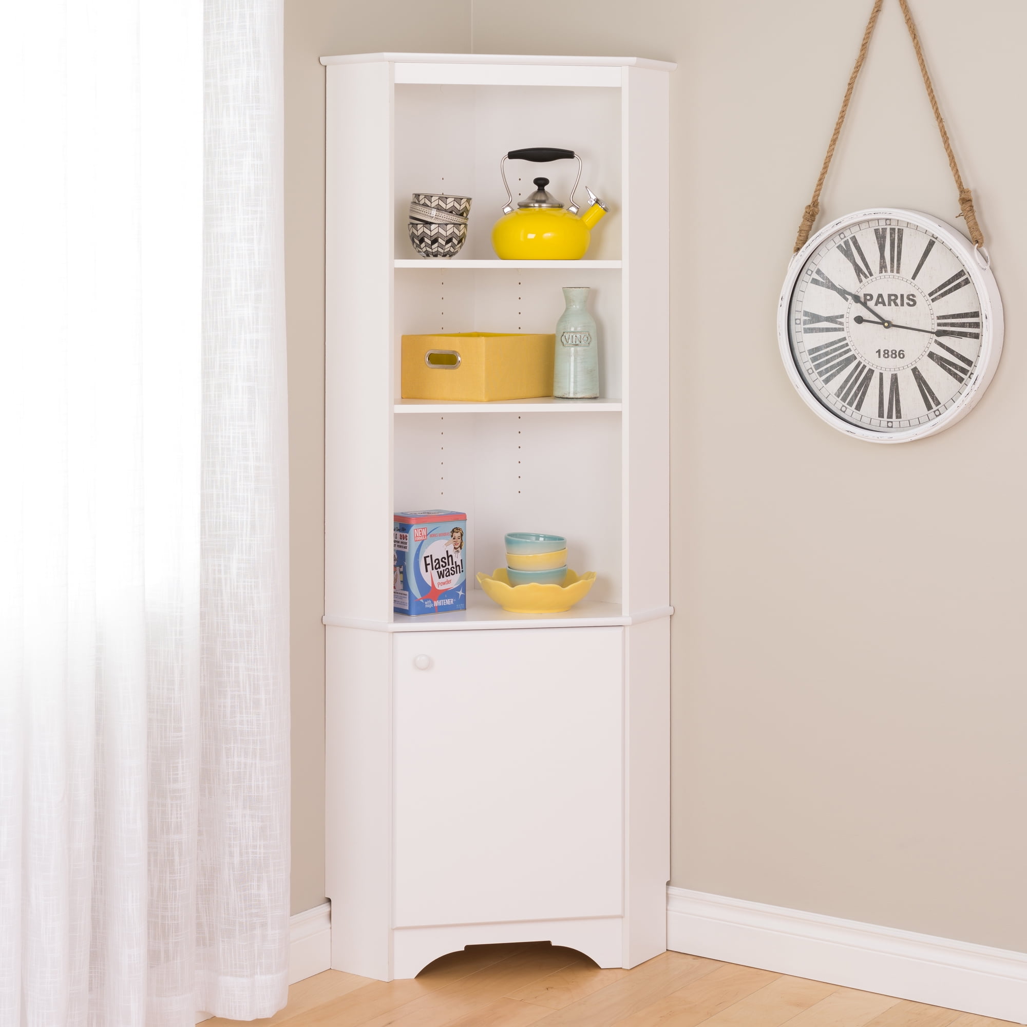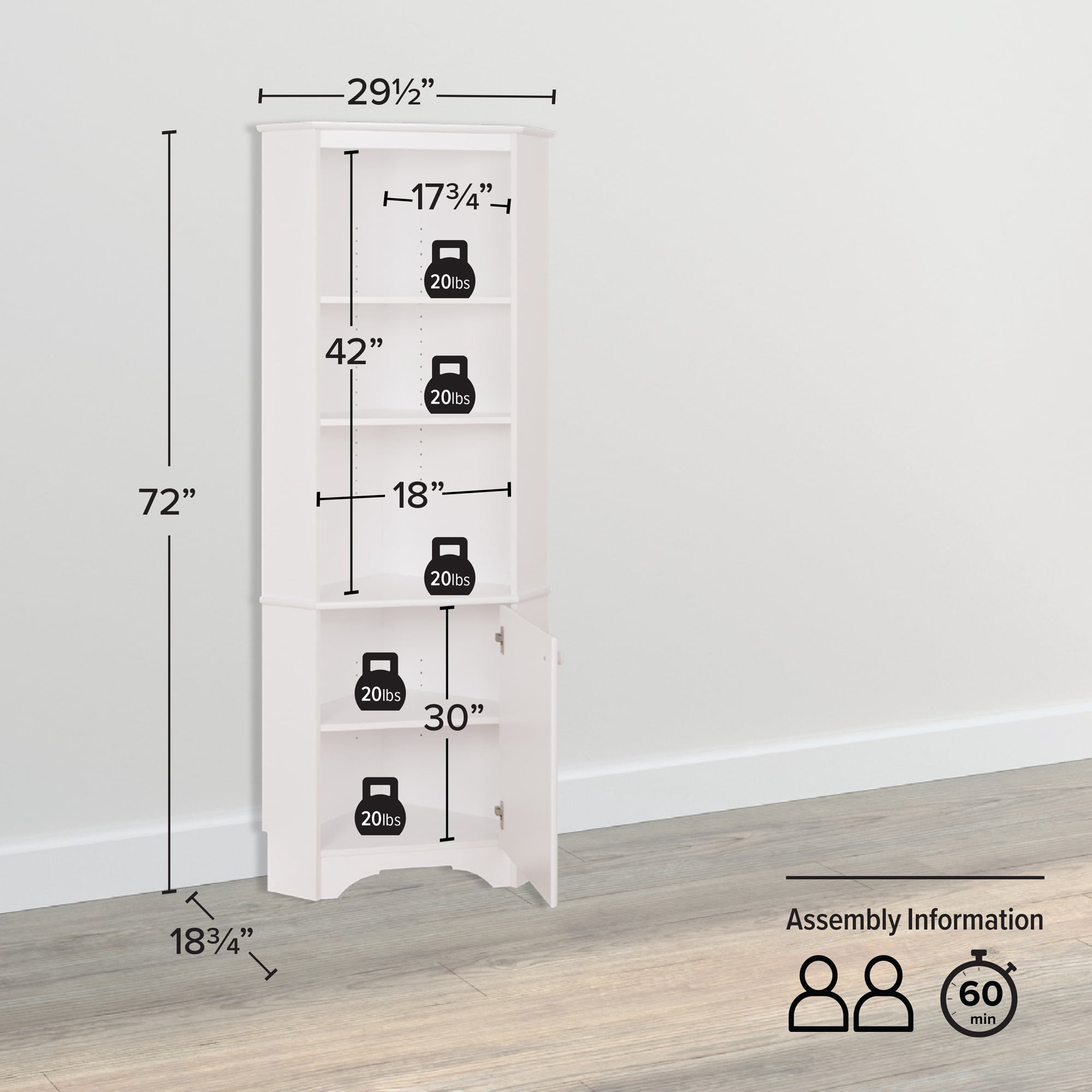 Prepac Elite 29.25″ Corner Cabinet with One Door, Tall White Storage Cabinet, Corner Cabinet with Doors, Corner Bathroom Cabinet 18.75″ D x 29.25″ W x 72″ H, White, WSCC-0604-1
