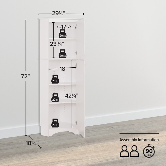 Make the most out of your unused corner spaces. This sophisticated, sturdy and functional 72 in tall corner cabinet includes 3 adjustable shelves to maximize storage and organization of your personal items. This multipurpose cabinet is the perfect addition to any kitchen, entryway, bedroom or any other place you need extra storage. Two solid MDF doors with soft profiled edges ensure that your personal items remain hidden to keep your room looking clean and uncluttered.