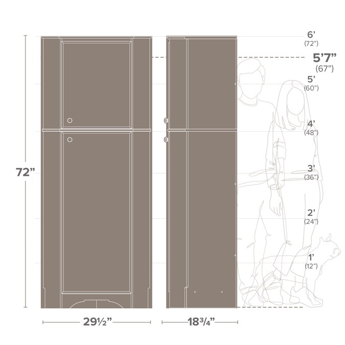 - Size (W x D x H): 29.25 x 18.75 x 72 in