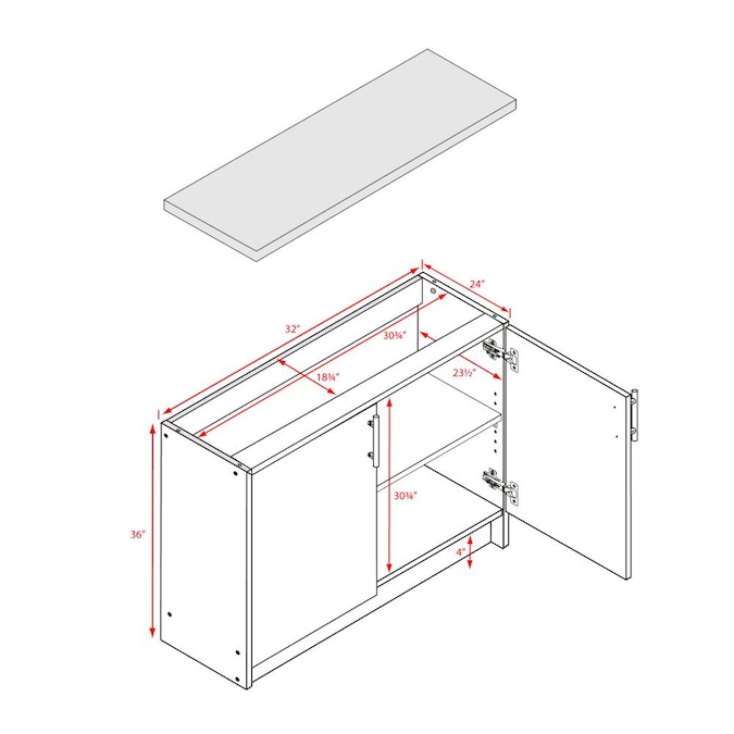 - Assembled dimensions: 32 in W x 36 in H x 24 in D
