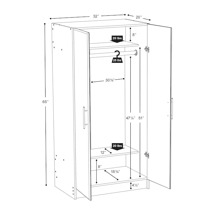 The elite 32 in wardrobe cabinet is welcome in any part of the house, either as a stand-alone product or when combined with other pieces in the elite collection. The hanging rod is ideal for storing jackets, coats and other hanger-friendly clothing, while the fixed top shelf suits hats, scarves and other small items. The fixed shelf at the bottom provides additional storage for shoes and heavier items. Constructed from non-toxic, CARB-2 compliant, laminated composite woods. Ships ready to assemble, includes an instruction booklet for easy assembly and has a 5-year manufacturer’s limited warranty. Manufactured in Canada and meets all north American safety standards.