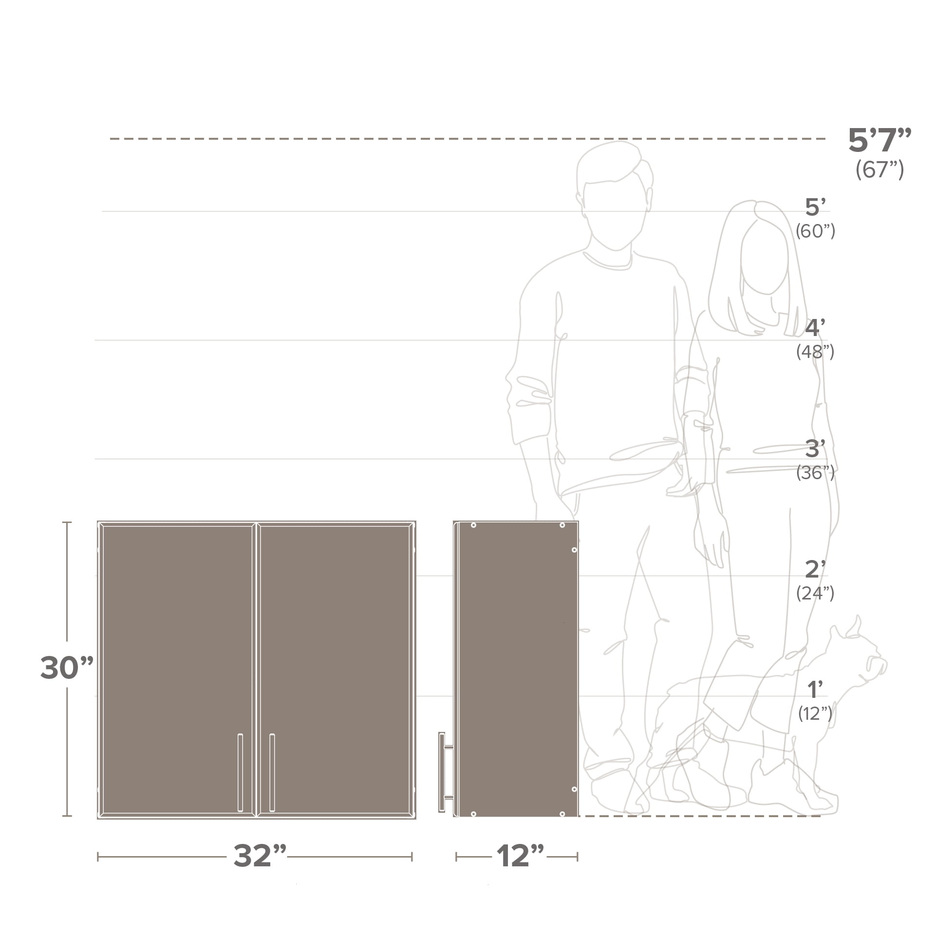 Stylish brushed metal handles 1 adjustable shelf 32 inches Wide – Can be used above Prepac’s Elite Base Cabinet (WEB-3236) Doors feature high quality, European-style 6-way adjustable hinges MDF doors with profiled (rounded) edges add a level of sophistication 12 inch depth leaves more clearance to work below the cabinet Finished in durable fresh white laminate Constructed from non-toxic, laminated composite woods with a sturdy MDF backer Manufactured in North America and meets all safety standards Ships Ready to Assemble, includes an instruction booklet for easy assembly Assembled Dimensions: 32 in. W x 30 in. H x 12 in. D Internal Dimensions: 30.75 in. W x 28.75 in. H x 10.75 in. D