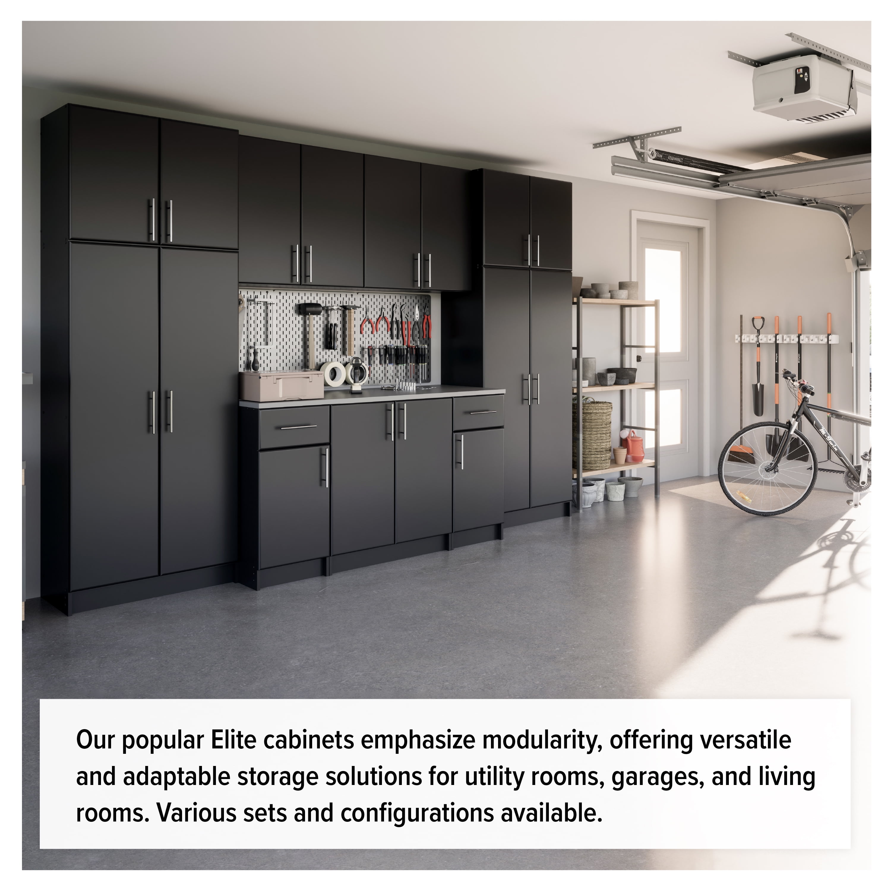Turn any cluttered room into an organized space with the Prepac Elite Storage Cabinet. This 16″ deep storage cabinet offers 34% more storage space than standard storage cabinets for convenient, versatile storage that helps you maximize the space in your garage, laundry room, kitchen, bathroom, office, or workshop. Practical and efficient, the fixed shelf provides reliable stability for any items that need a dedicated spot while the 2 adjustable shelves provide the flexibility to accommodate a variety of items with varying sizes to ensure each inch of space is utilized effectively. This deep storage cabinet is as functional as it is stylish with its clean lines and soft-edge doors on adjustable 6-way European-style hinges all in a sleek black laminate finish with elegant brushed metal handles. Constructed from non-toxic, CARB-2 compliant, laminated composite woods with a sturdy MDF back panel, this high-quality storage cabinet provides long-lasting durability to withstand years of quality organization. The storage cabinet measures 24″ W x 65″ H x 16″ D with each shelf holding up to 20 pounds, and it ships ready-to-assemble with an instructional booklet for quick and easy assembly.
