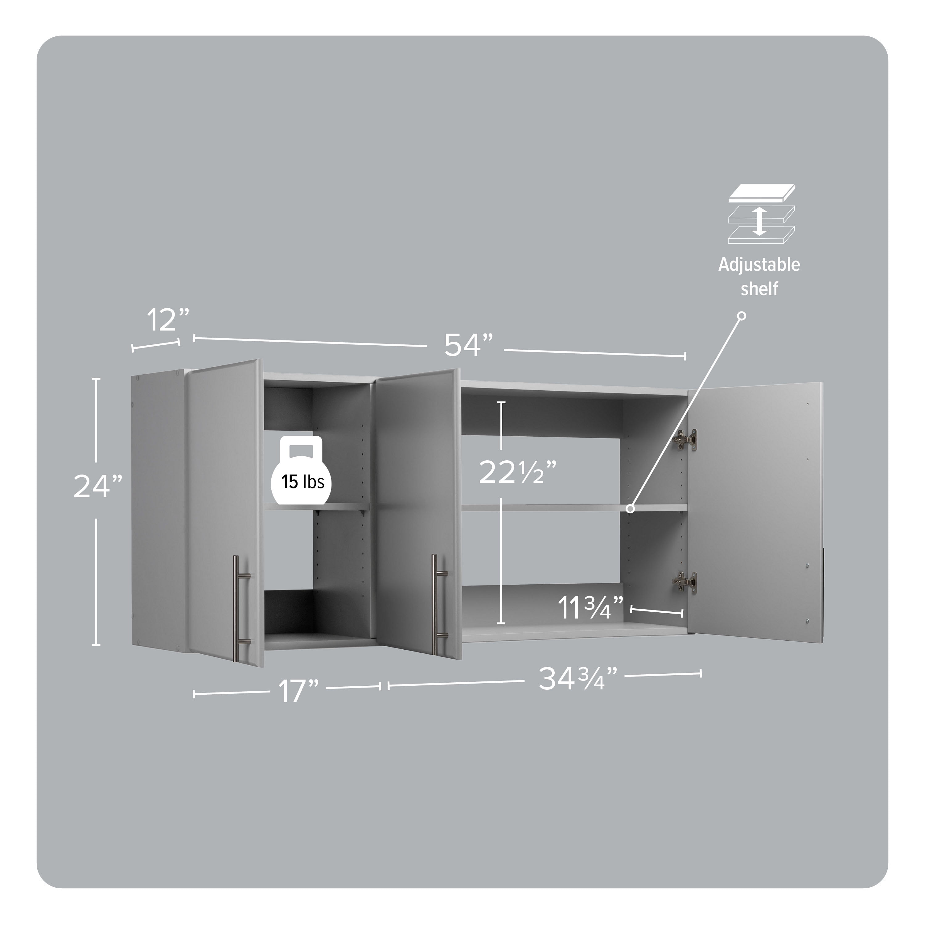 Prepac Elite Tall 3-Door Versatile Adjustable Light Gray Garage Wall Cabinet, 54″W x 24″H x 12″D
