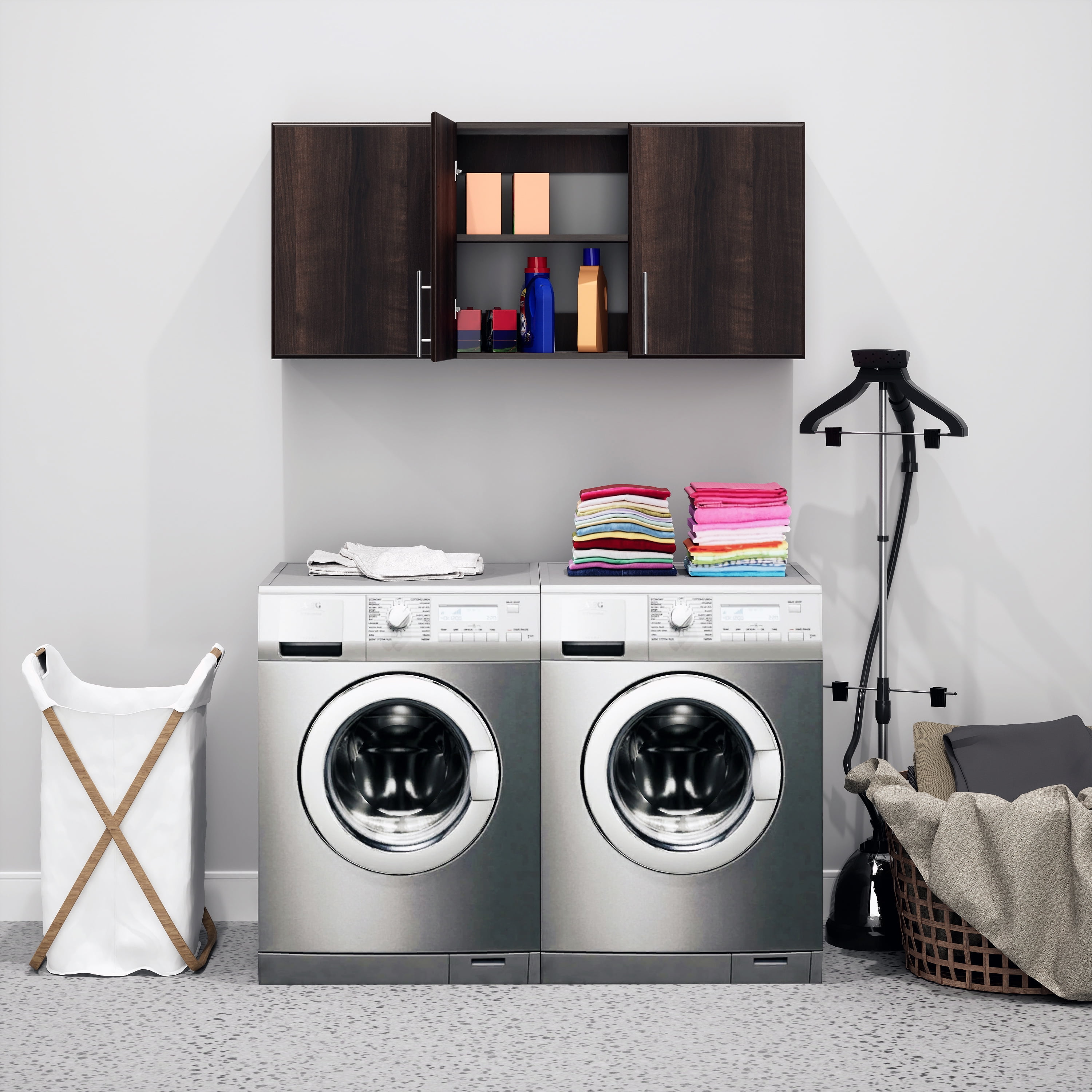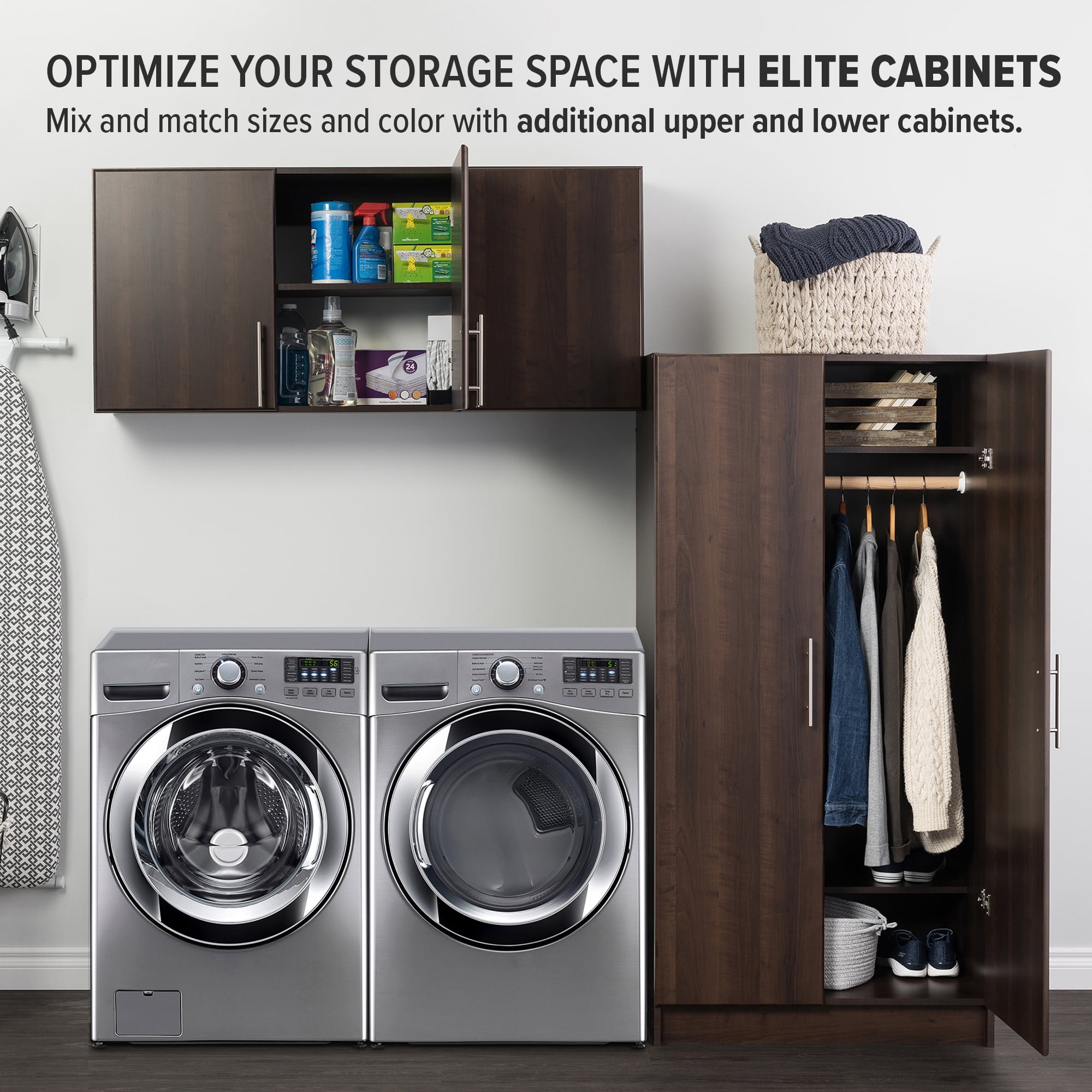Introducing the Prepac Elite Wall Mounted Storage Cabinet, an essential addition to your home’s storage solutions. This compact and functional overhead storage cabinet measuring 54″W x 24″H x 12″D is equipped with three soft-edged doors that pivot on adjustable, six-way European style hinges and two adaptable shelves. It boasts a neat, clean look with a espresso laminate finish complemented by chic satin nickel-finished metal handles. This storage cabinet with doors and shelves is custom-fit to be mounted above your standard-sized washer and dryer, enabling wall cabinets for laundry room storage. The doors open conveniently to either the right or left, depending on your room configuration, providing flexible accessibility. Reliably manufactured in North America, this wall cabinet is crafted with durable, CARB-2 compliant laminated composite woods, ensuring its quality and non-toxicity. The cabinet ships flat-packed, including an instructional booklet, allowing for ready assembly upon delivery. This compact overhead cabinet’s external dimensions are 54″D x 24″W x 12″H, while the internal dimensions are 34.75″D x 22.5″W x 11.75″H, making it a suitable storage unit for your garage or as an above toilet storage cabinet in your bathroom. Whether it be as a bathroom wall cabinet, bathroom storage cabinet, or for your kitchen and garage storage, this wall-mounted cabinet with its functional doors and shelves can be fitted to other wall cabinets for versatile storage. With the Prepac Elite, optimize your bathroom cabinet storage, kitchen storage, and garage storage. The unit is not just limited to laundry cabinets and storage, but is also suitable as salon cabinets and storage. Add versatile storage capacity with this pantry cabinet, transforming clutter into organized spaces.