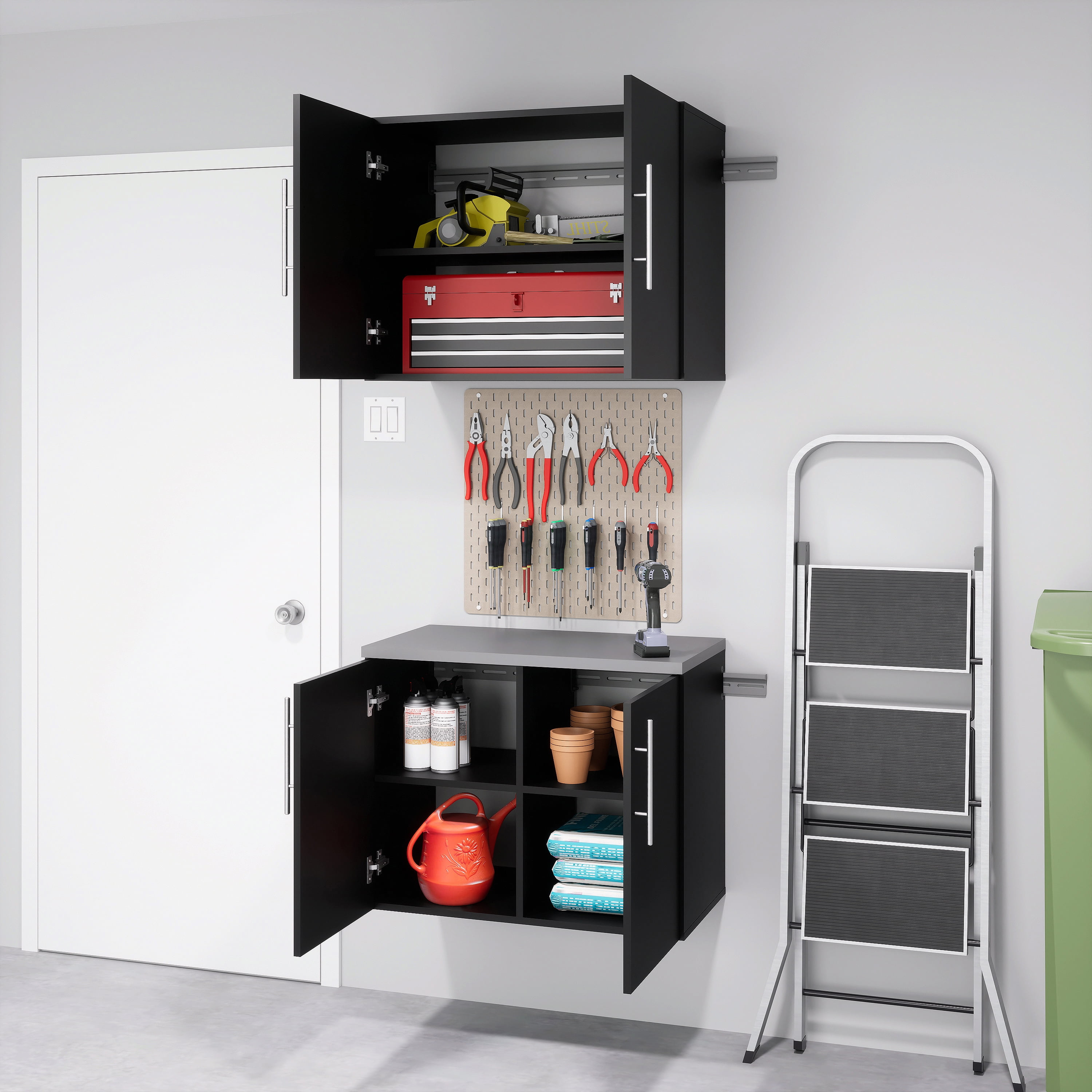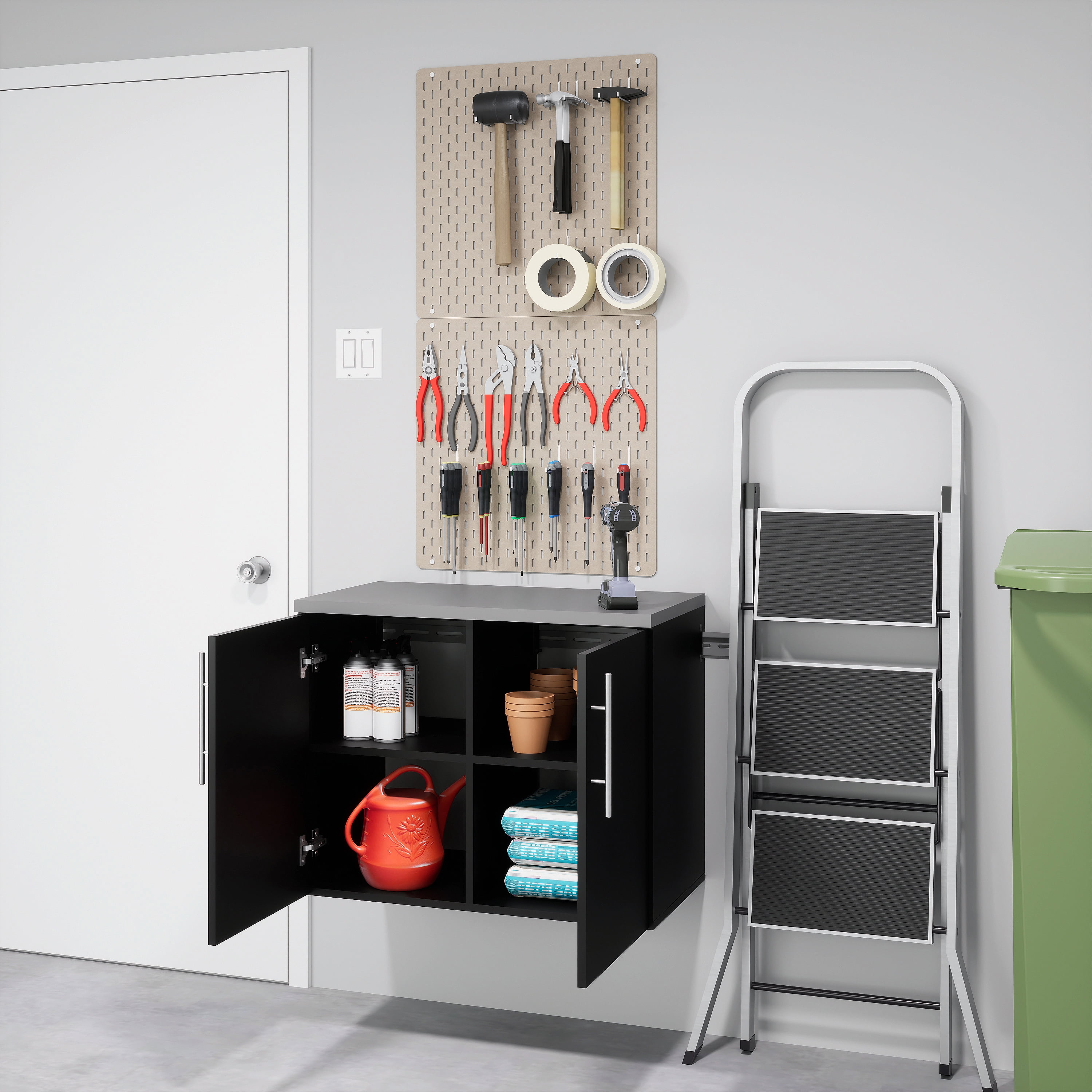 Prepac HangUps 2-Door Base Wall Mounted Garage Storage Cabinet, 30″ W x 24″ H x 16″ D, Black
