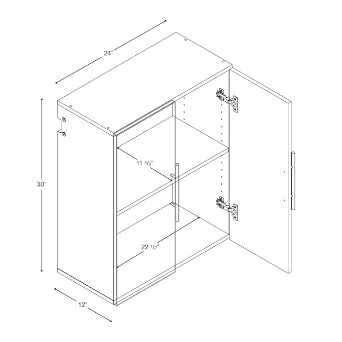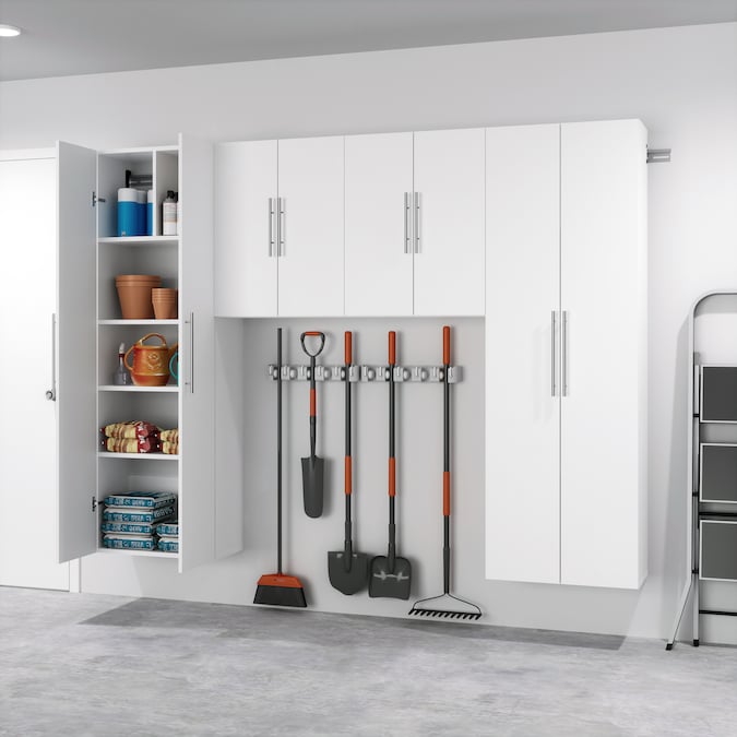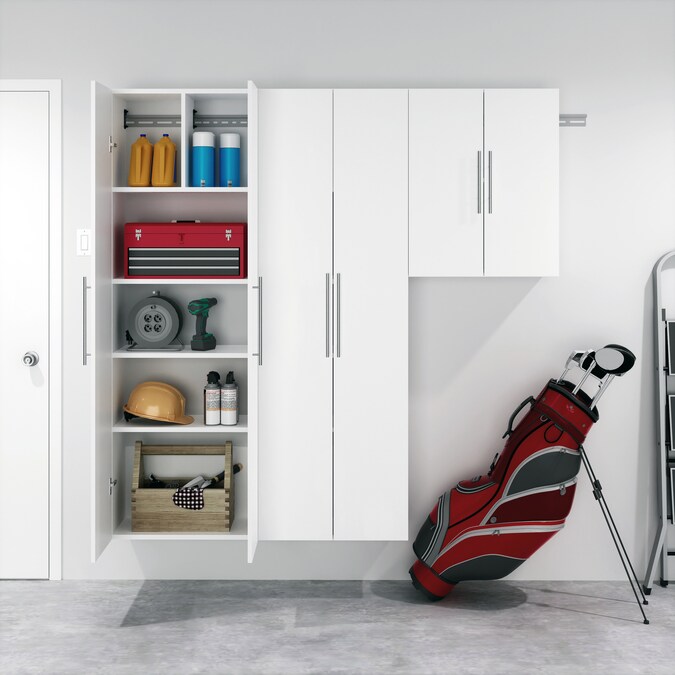 The HangUps 24 in upper cabinet offers versatility for your ever changing storage needs in the garage, laundry room, office or workshop. The upper cabinet mounts securely to the wall with a heavy duty metal rail and hook system. The wall mounted feature ensures easy cleaning beneath the cabinets and protects your stored items from water and dirt. The HangUps collection is constructed using laminated composite wood and features metal handles and adjustable hinges. This product ships ready-to-assemble and includes all hanging rails and fastening bolts. Add other cabinets from our HangUps collection to create a storage system to convert any cluttered room into an organized space. Constructed from non-toxic, CARB-2 compliant, laminated composite woods. Ships ready to assemble, includes an instruction booklet for easy assembly and has a 5-year manufacturer’s limited warranty. Manufactured in Canada and meets all north American safety standards.