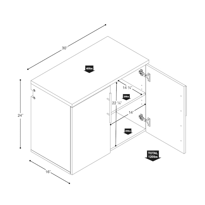 - Assembled Dimensions: 30 in W x 24 in H x 16 in D (5 cubic feet)